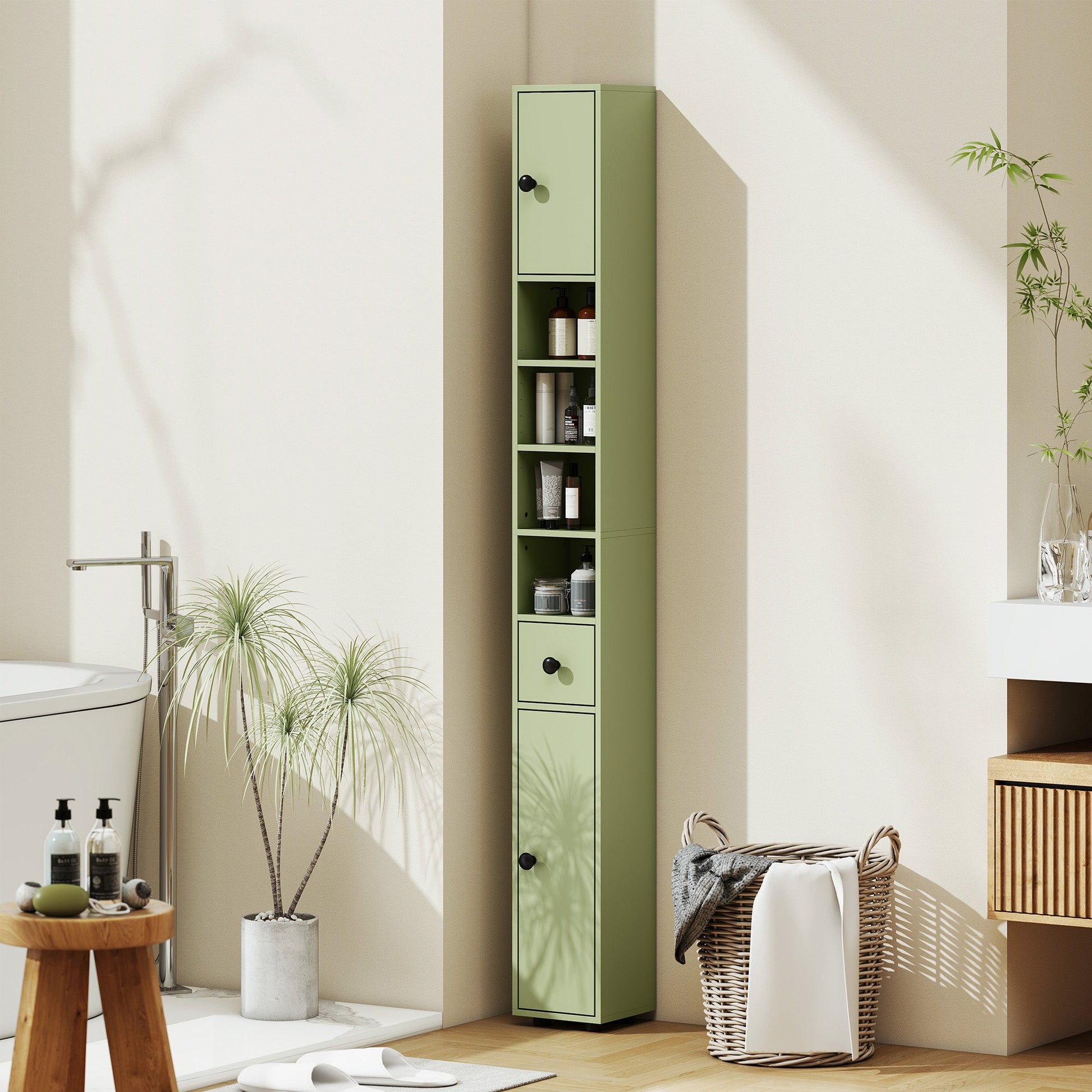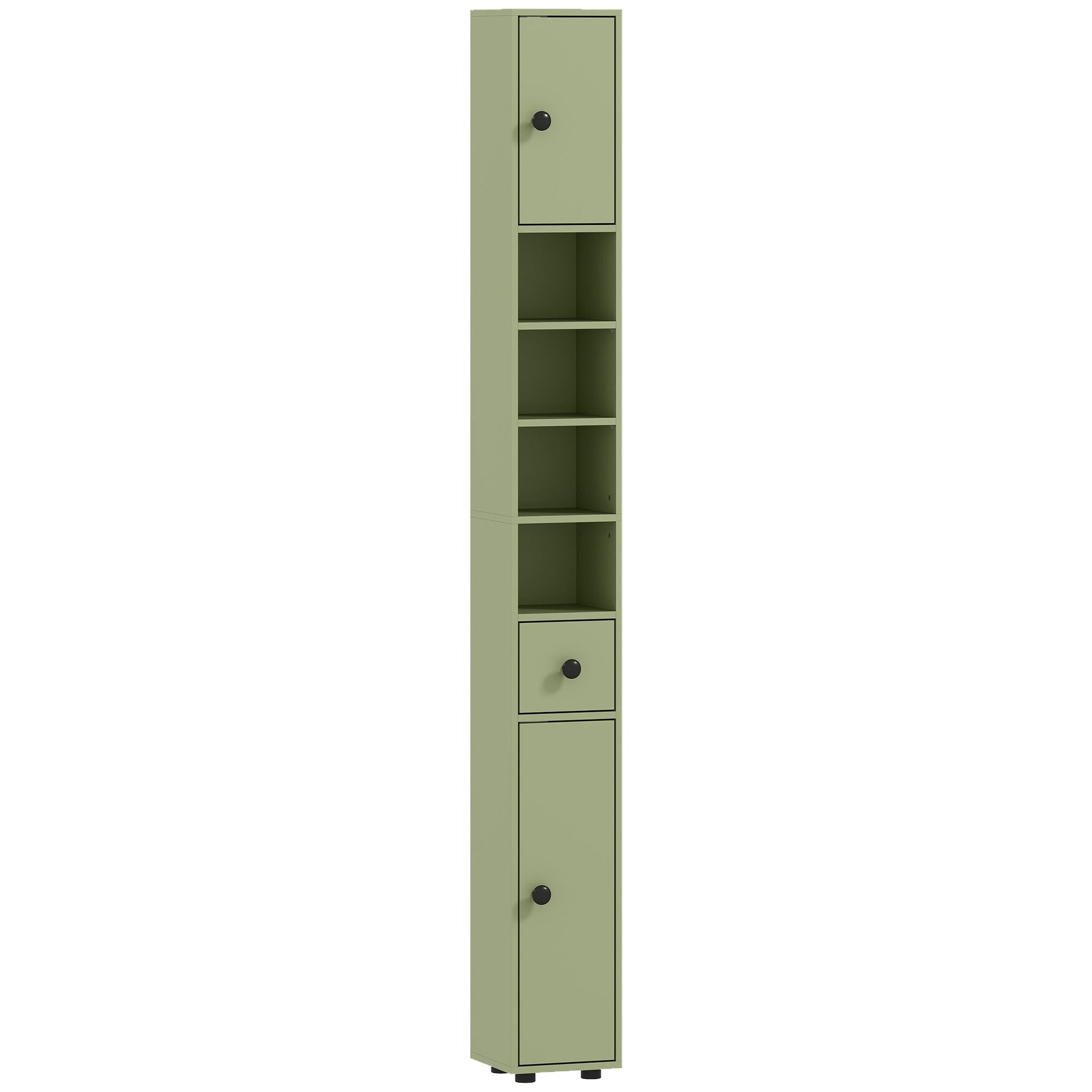 kleankin 180cm Slim Bathroom Cabinet, with Drawer, Shelves and Cupboards - Green