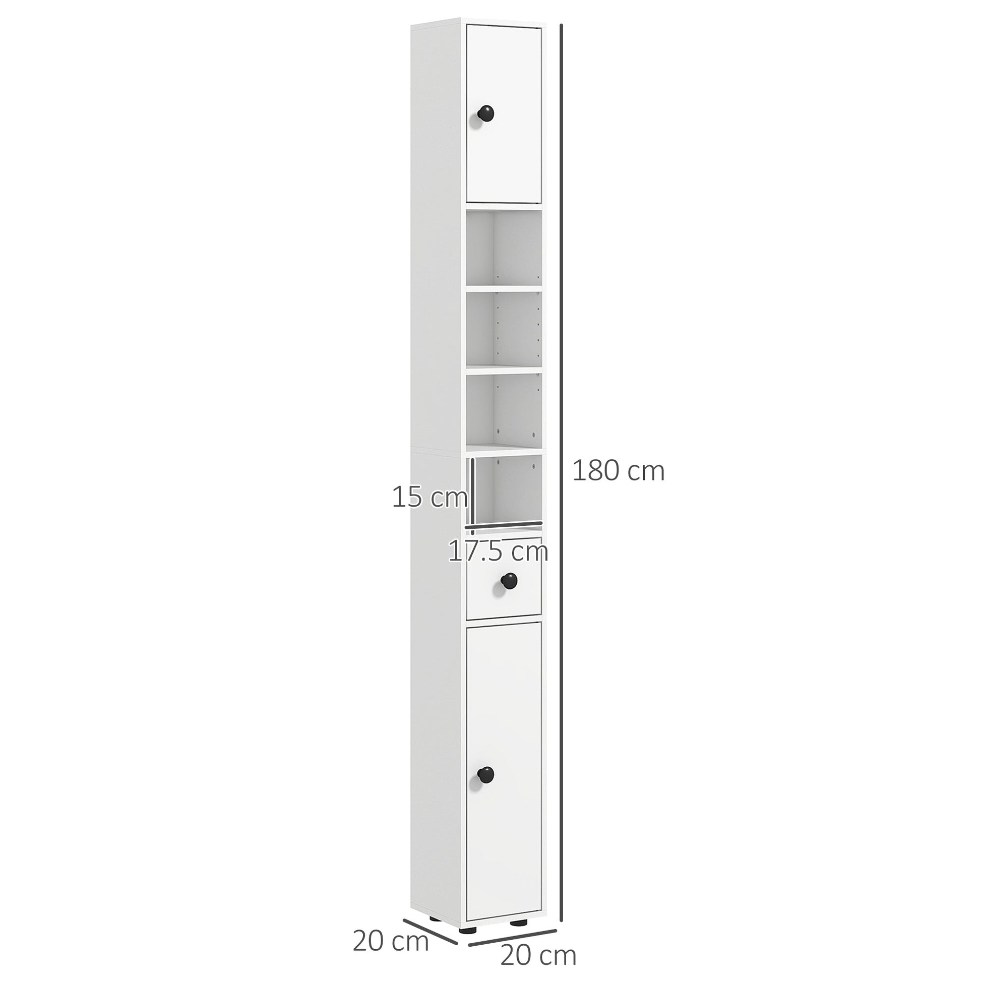 kleankin 180cm Slim Bathroom Cabinet, with Drawer, Shelves and Cupboards - White