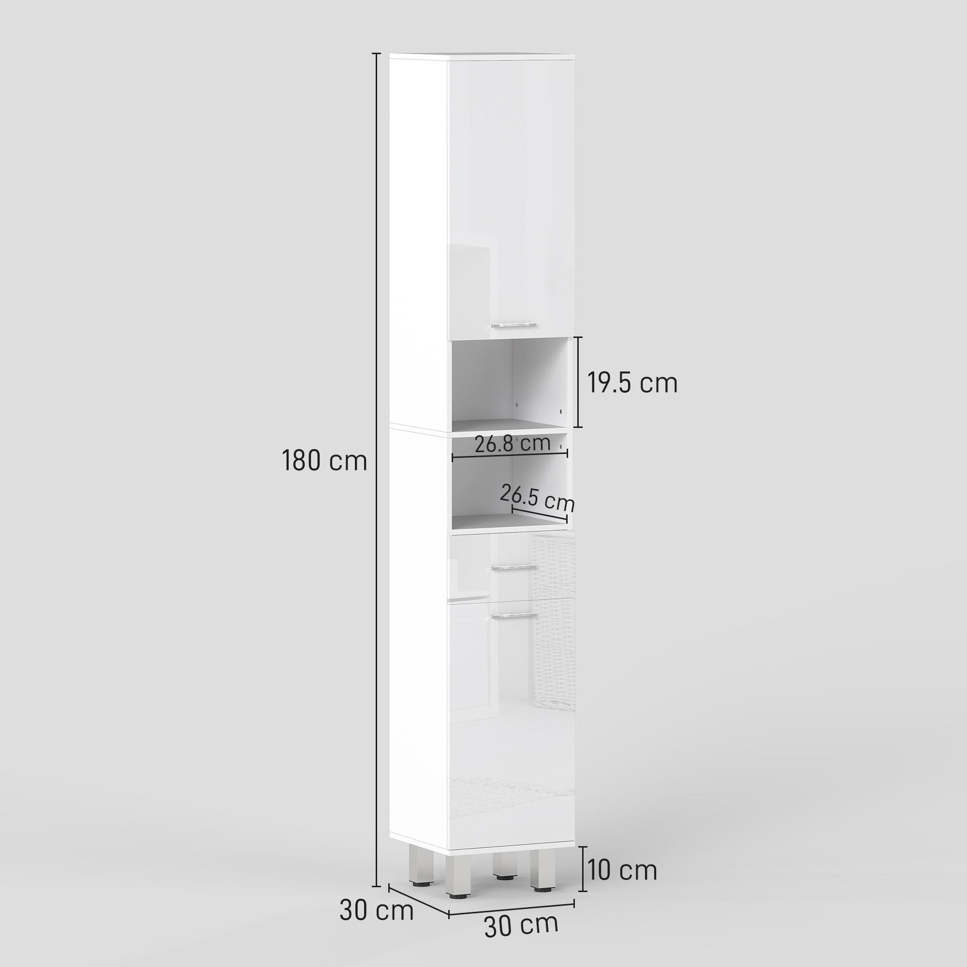 kleankin 71" Tall Slim Bathroom Storage Cabinet, Tall Narrow Cupboard with Drawer, Open Shelves, 2 Doors Cabinets and Adjustable Shelves for Kitchen, Hallway, Living Room, High Gloss White