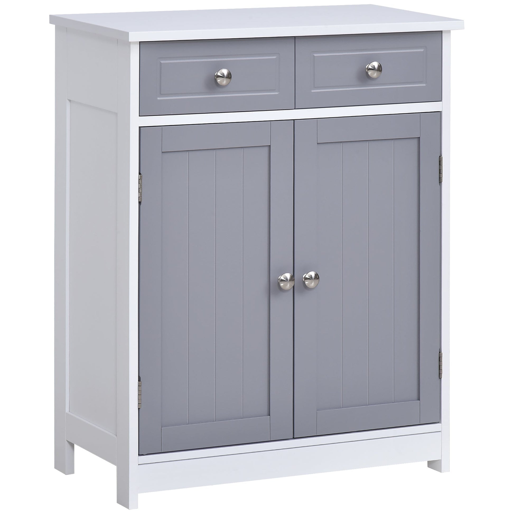 kleankin 75x60cm Freestanding Bathroom Storage Cabinet Unit w/ 2 Drawers Cupboard Adjustable Shelf Metal Handles Traditional Style Grey White