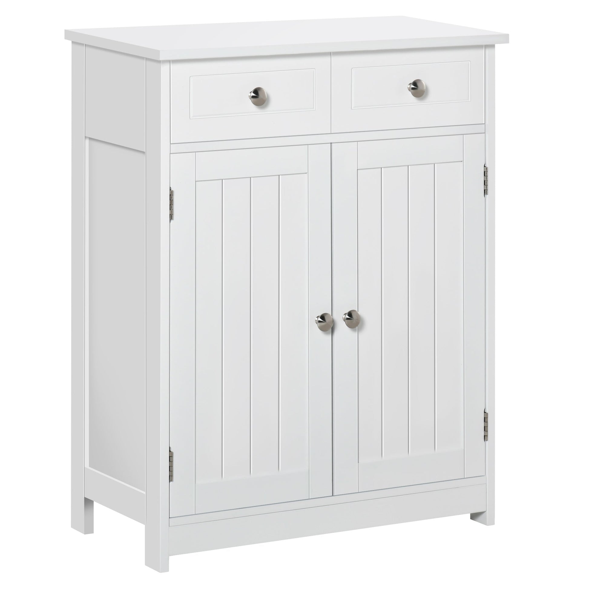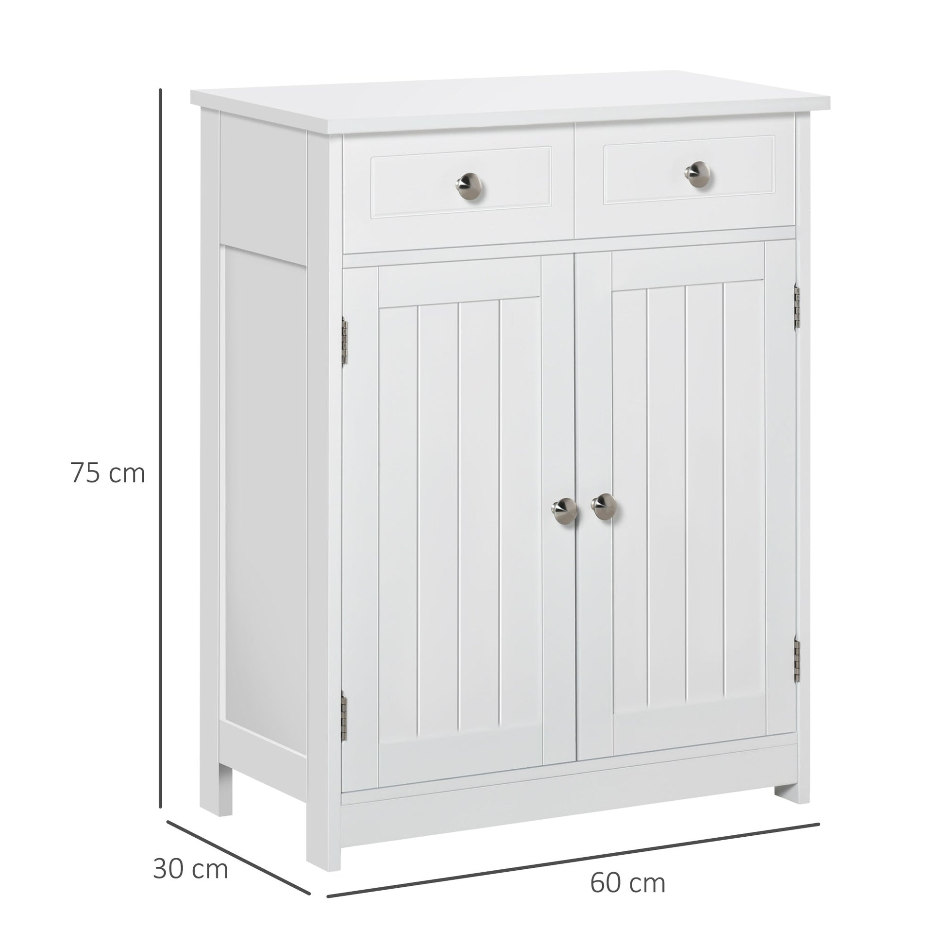 kleankin 75x60cm Freestanding Bathroom Storage Cabinet Unit w/ 2 Drawers Cupboard Adjustable Shelf Metal Handles Traditional Style White
