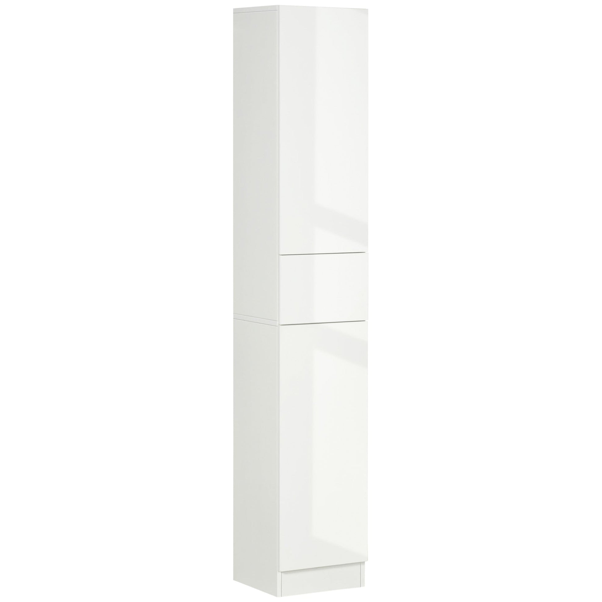 kleankin Tall Bathroom Cabinet with Adjustable Shelves, High Gloss Storage Cupboard, Freestanding Tallboy with Storage Drawer, White