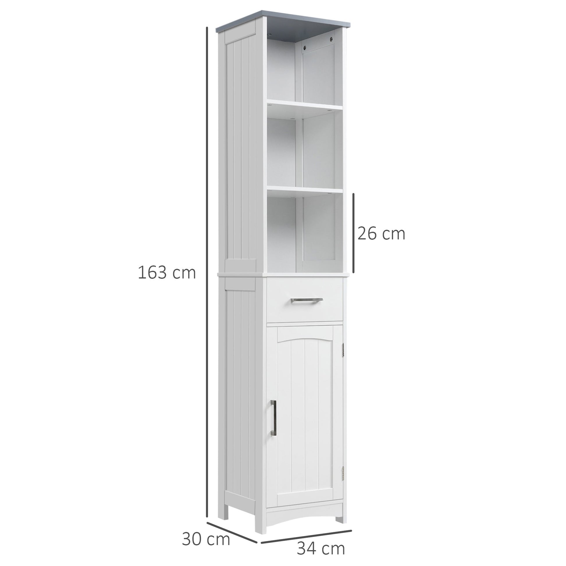 kleankin Tall Bathroom Storage Cabinet with 3 Tier Shelf, Cupboard, Drawer, Door, Freestanding Linen Tower, Slim Side Organizer, White