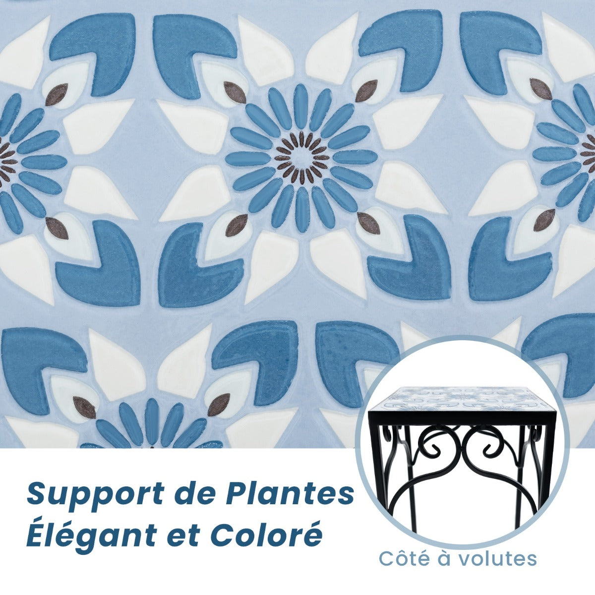 Metal Plant Stand Set of 3 with Mosaic Tile-Blue