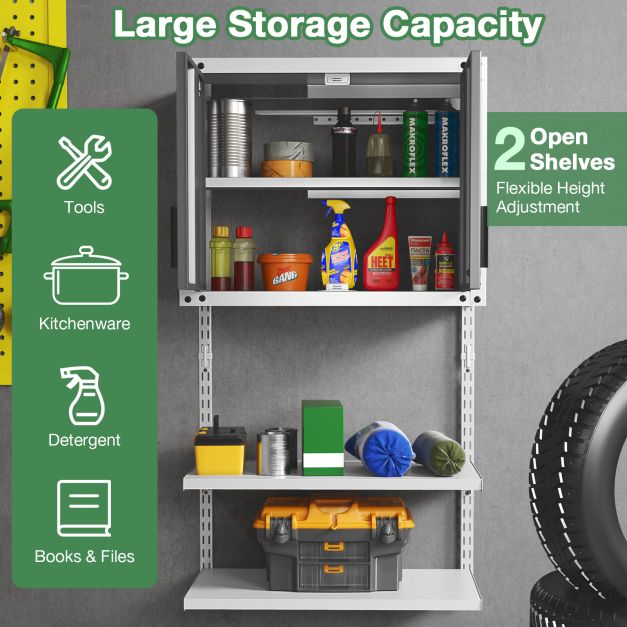Metal Wall Cabinet with Lock and 3 Adjustable Shelves