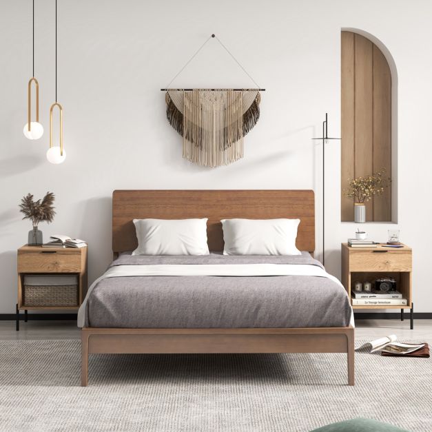Charge your devices in style with our mid century modern nightstand! This functional piece of furniture includes a built-in charging station with 2 AC outlets (250V/13A) , a USB(12V/1.5A) and a Type-c ports (12V/1.67A), ensuring that your devices are always within reach and fully powered. Plus, with its pull-out storage drawer and open compartment, you’ll have plenty of space to keep your essentials organized. Plus, this bed side table boasts a mid-century modern design with a stunning wood grain, making it the perfect addition to any furnishing styles. Crafted from high-quality materials and featuring heavy-duty metal legs, this end table can serve for long. The humanized details, like the protective foot pads, will give you a better experience. Don’t miss out on transforming your bedroom into a stylish and functional oasis! Convenient Charging Station: Keep your devices fully charged and within reach with this nightstand featuring a built-in charging station. With 2 AC outlets (250V/13A) , a USB(12V/1.5A) and a Type-c ports (12V/1.67A), no more hassle of searching for outlets. A convenient cable holeat the back avoids unsightly cords! Smart Storage Solution: The bed side table offers versatile storage options with a spacious pull-out storage drawerand an open storage cubby. Store yourchargers, eyeglasses, books, or display ornaments for a clutter-free and organized bedroom. Mid Century Modern Design: Enhance your bedroom decoration with the stylish mid century modern nightstand. The minimalist design, sleek legs, and beautiful wood grainmake it a perfect fit for any contemporary or retro-themed bedroom. Durable andSturdy Construction: Crafted from high-quality materials, our end table is built to last. The sturdy construction with 4heavy-duty metal legs ensures stability, while the non-scratch foot pads underneath are carefully designed to protect your hard wood floor. Easy Assembly: The sofa side table comes with easy-to-follow instructions and all the necessary hardware for hassle-free assembly. No need to hire professionals; you can have your stylish and functional nightstand ready in no time.