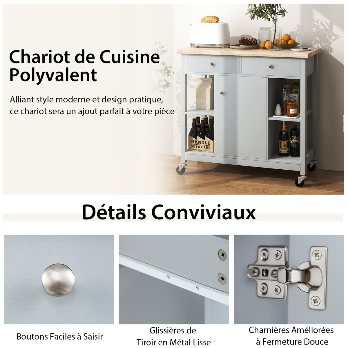 Mobile Kitchen Island Cart Rolling Kitchen Island with Rubber Wood Top-Grey