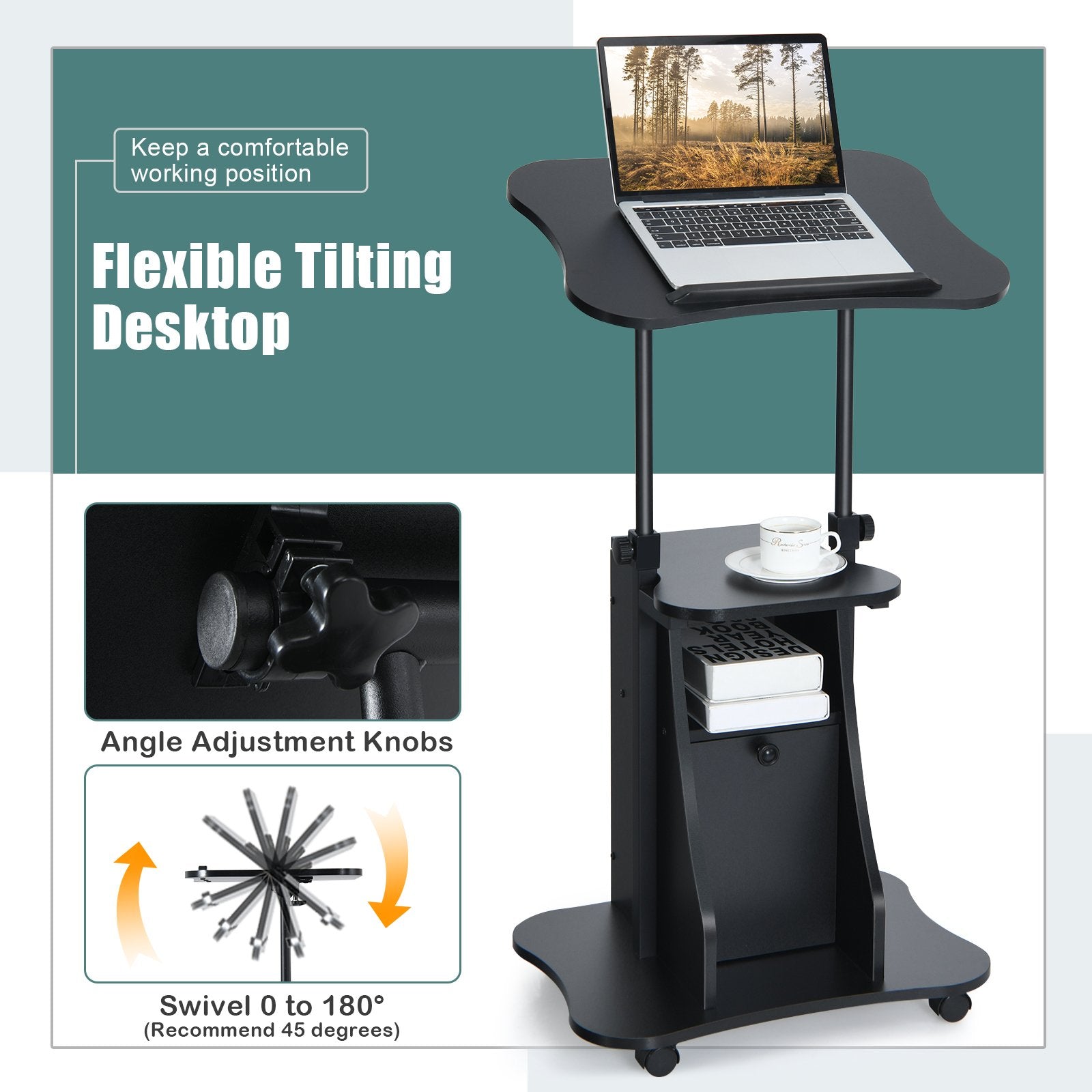 Mobile Laptop Table with Adjustable Height and Storage Cabinet-Black