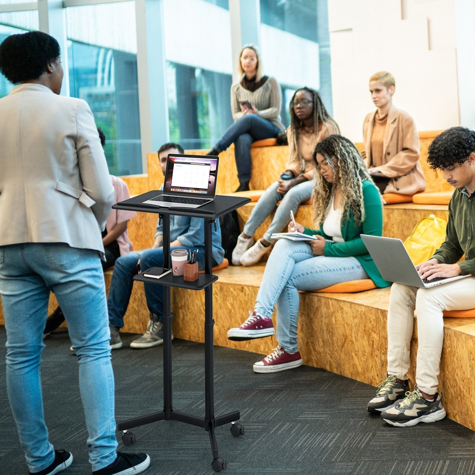 Mobile Lectern Podium Height-adjustable Rolling laptop cart with Tilting Top-Black