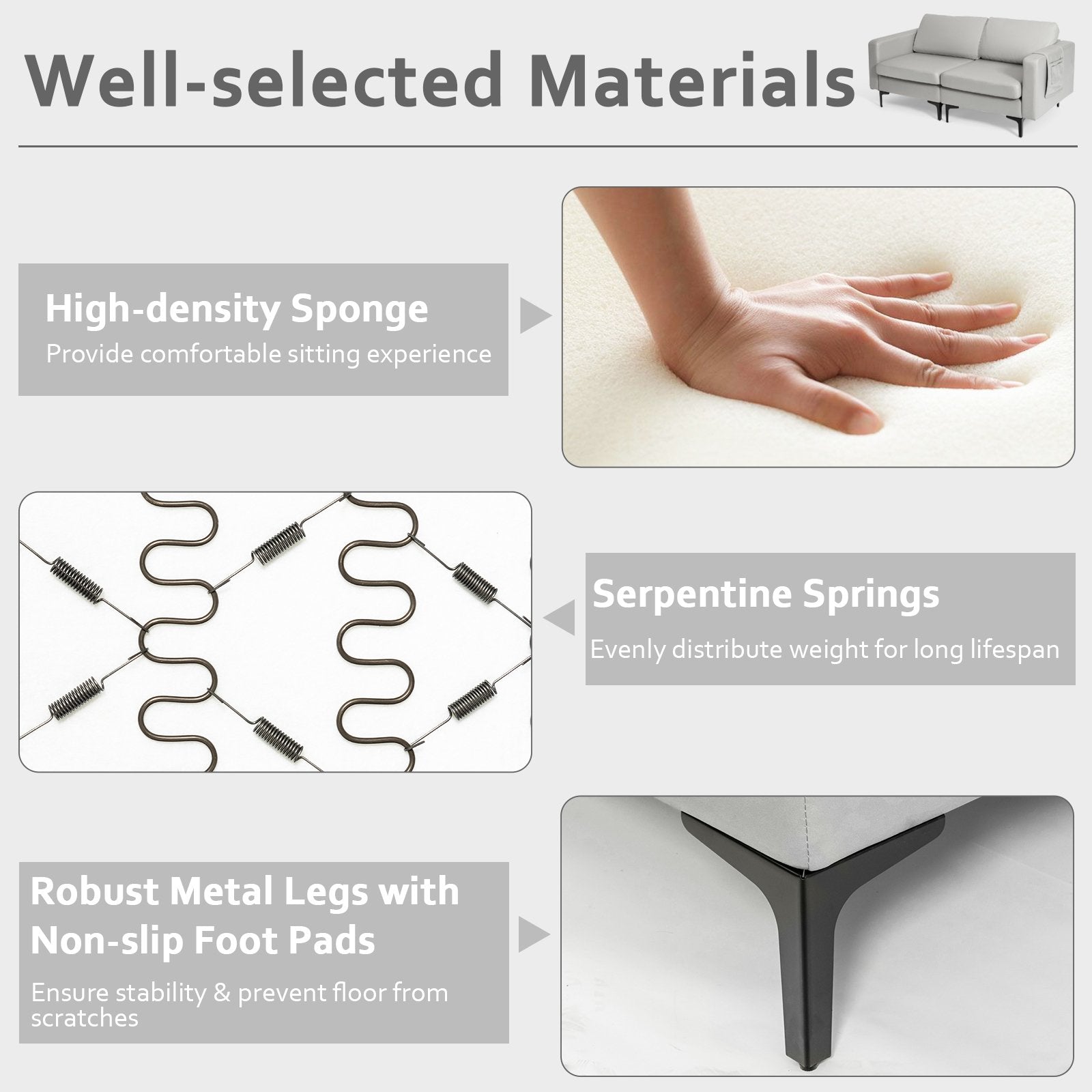 Modern 2-Seat Modern Sofa Couch with Detachable Remote Control Holder-Light Grey