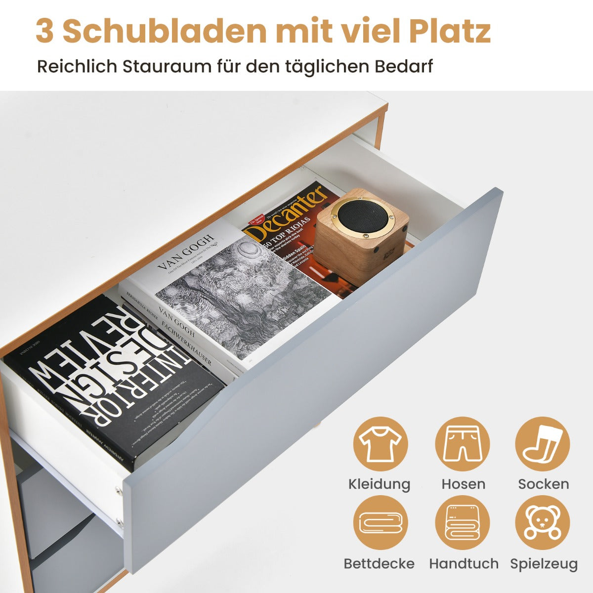 Modern 3 Drawer Chest Dresser with Large Storage Capacity Embedded Handle-Grey
