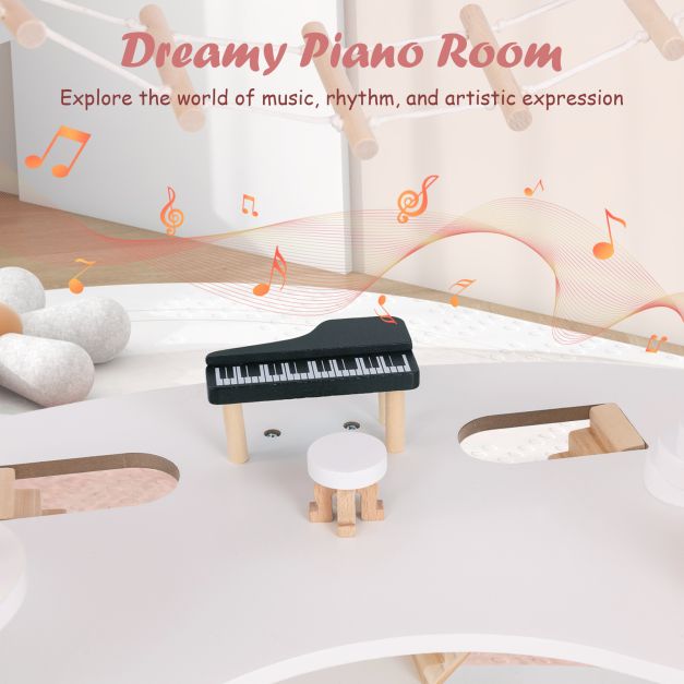 Are you looking for the ultimate playtime experience for your child? This multifunctional dollhouse provides endless fun with its 3 tiers and 7 rooms, encouraging imaginative play. Featuring 33 delightful accessories like a piano, sofa, TV, and staircase, children can design dream living spaces and enjoy interactive storytelling sessions, fostering their imagination and cognitive skills. Crafted with Safe materials and a stable frame, this dollhouse ensures a secure play environment for young explorers, boasting sturdy wood supporting rods and rounded corners for peace of mind. Perfect for kids aged 3-8, it makes a great gift for birthdays or holidays, offering safe and engaging play sessions. All-in-One Dollhouse: Enjoy endless hours of imaginative play with this multifunctional dollhouse. It features 3 tiers with 7 rooms, including a gym, living room, bedroom, kitchen, and more, providing endless fun for kids. Realistic Room Layout: This wooden dollhouse comes with 33 delightful accessories like a piano, sofa, TV, and staircase, allowing kids to create realistic room layouts and design their dream living spaces. Safe Material andStable Frame: Crafted with sturdy wood supporting rods and rounded corners, this dollhouse ensures a safe and stable play environment for young explorers. Besides, the smooth, splinter-free surface offers a worry-free playtime. Kids Educational Toy: Beyond entertainment, this versatile dollhouse is a valuable educational tool that enhances storytelling skills and fosters creativity. It helps children learn essential life skills and encourages social interaction, sparking imaginative play sessions. Wide Application andDimensions: This playhouse toy can be an ideal present for 3-8 years old kids on birthdays, holidays, or any special celebration. The overall dimensions are 100 x 48 x 85 cm (L x W x H).