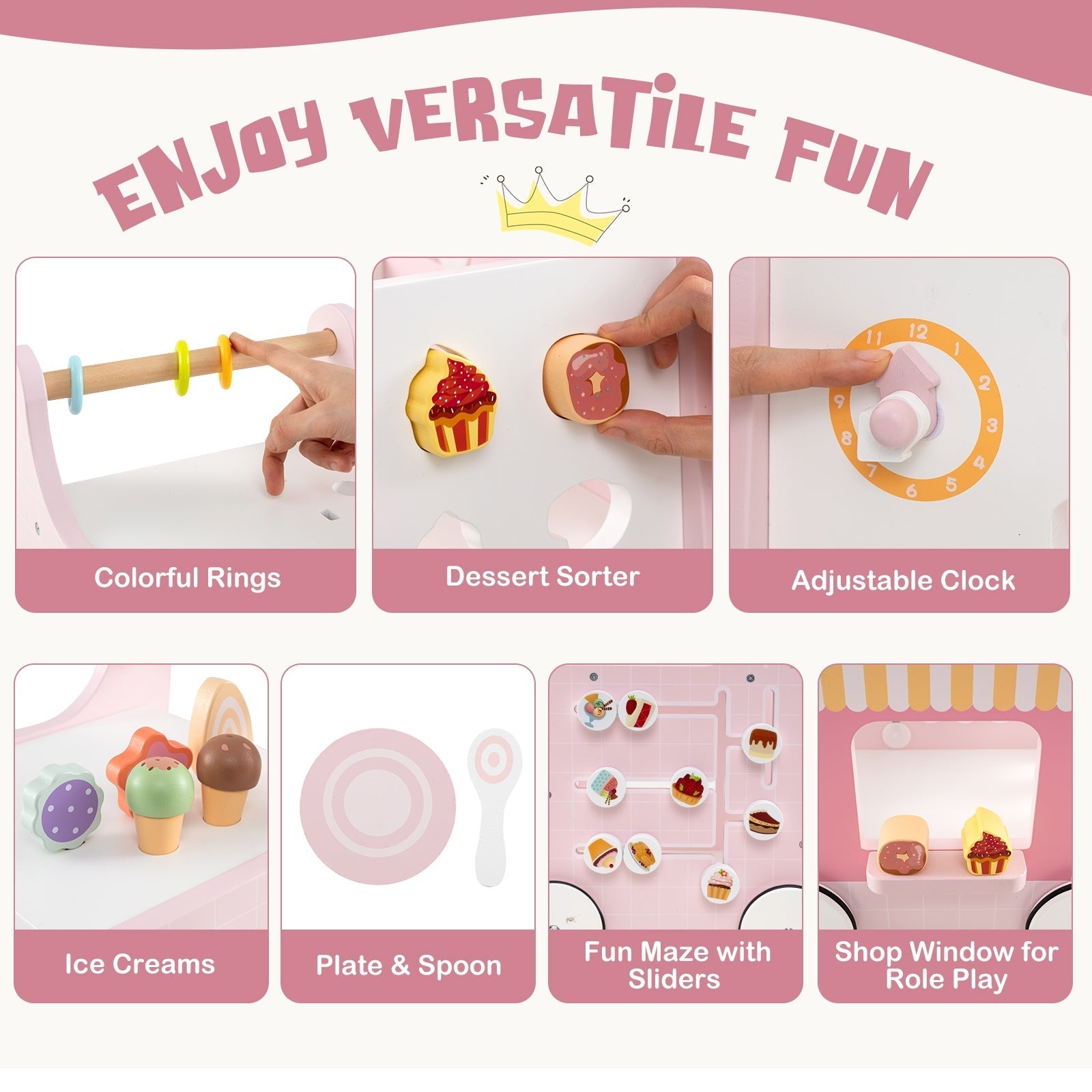 Multifunctional Ice Cream Cart Toy with Sweet Accessories and Smooth Wheels-Pink