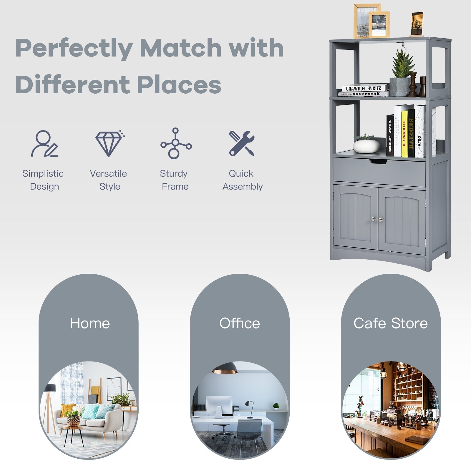 Multipurpose Storage Cabinet with Drawer for Bathroom-Grey