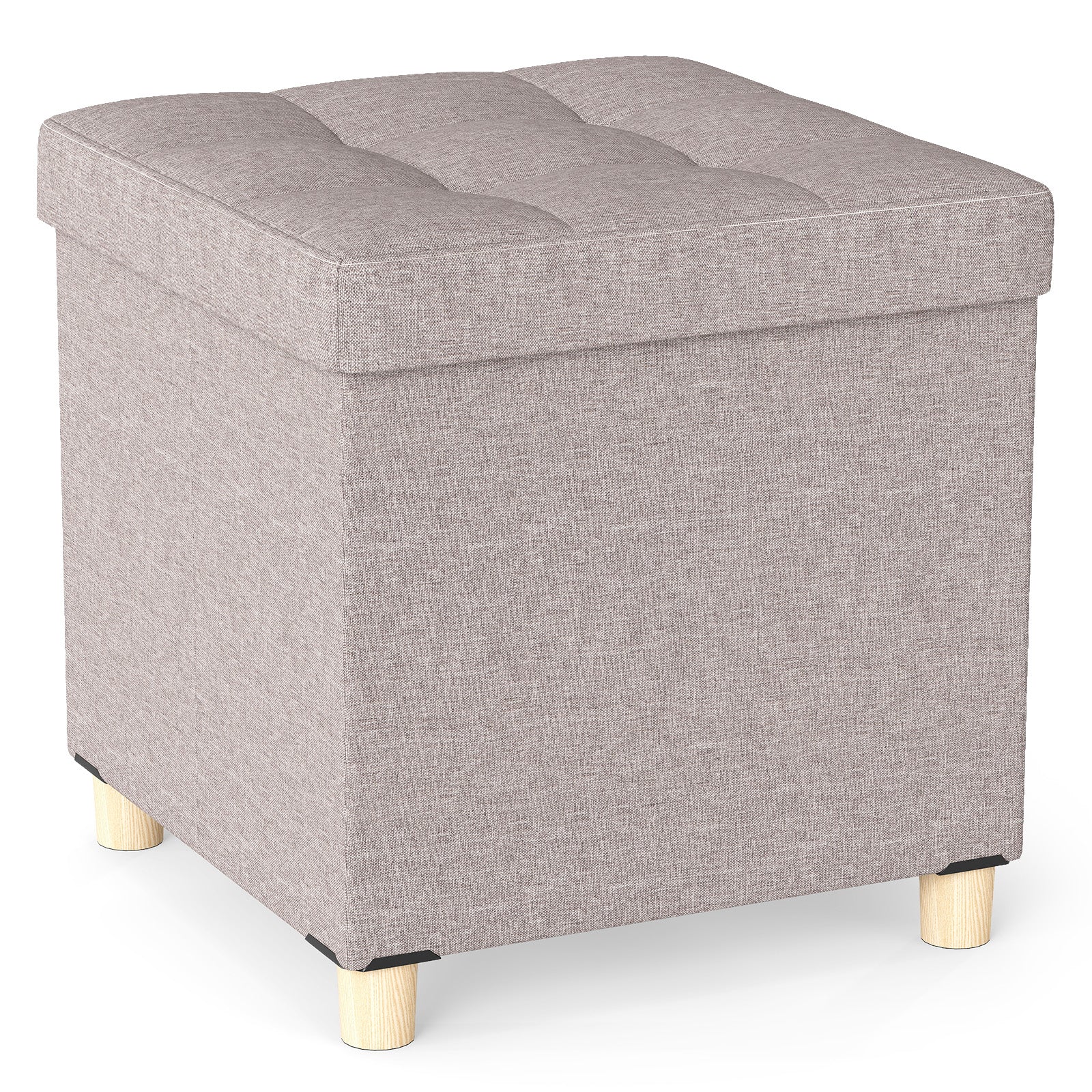 Ottoman with Storage Linen Fabric Footstool with Tray and Rubber Wood Legs-Grey