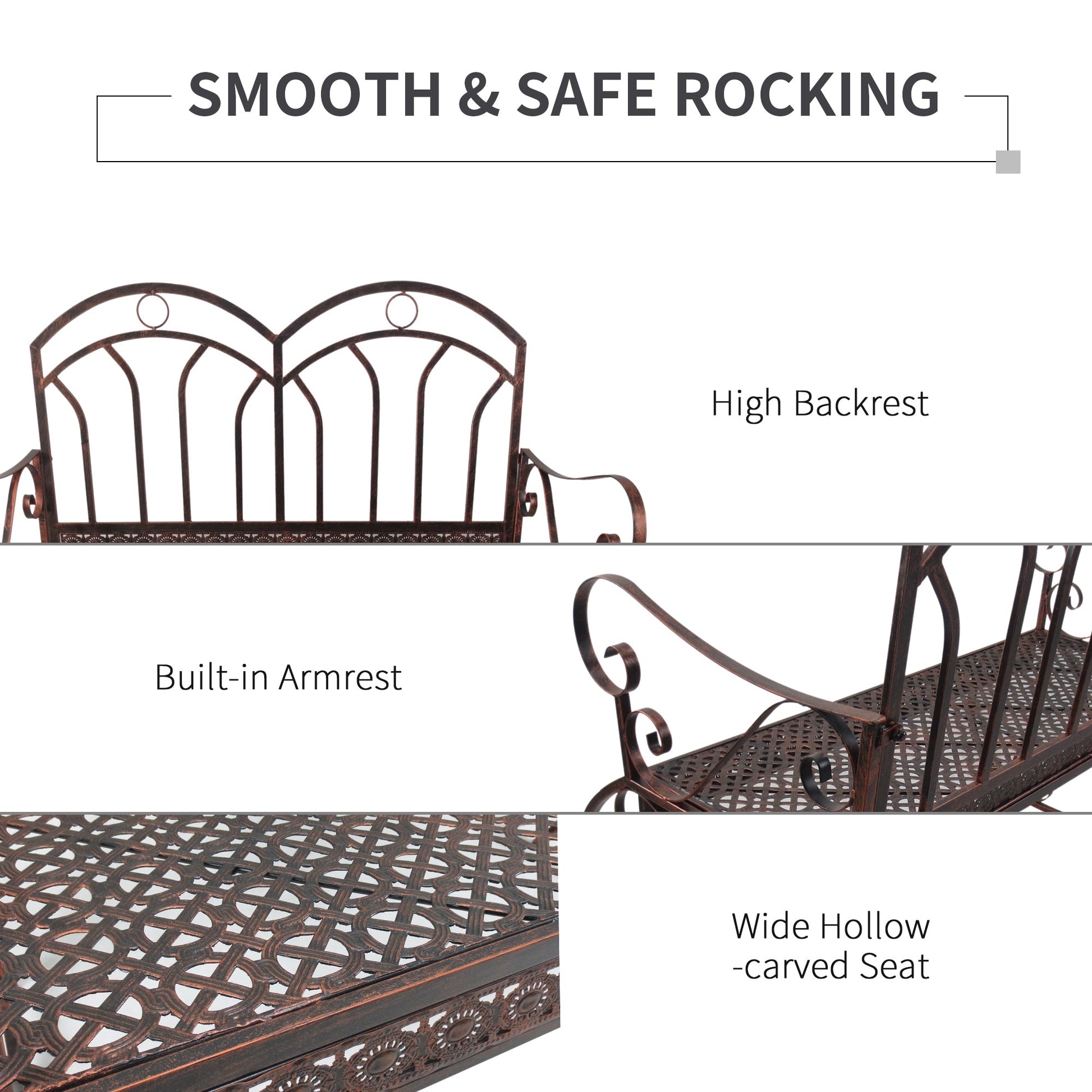 This Outsunny 2 seater garden rocking chair is a great piece of furniture to have in your garden and patio. Made from metal in a bronze finish, it will be a great compliment to any home. The curved garden bench is a single seater with rocking function and comes with armrests making it comfortable while you enjoy the sunshine. This outdoor rocking chairs for adults are ideal items with decoration and seat function to have in your garden or patio places!