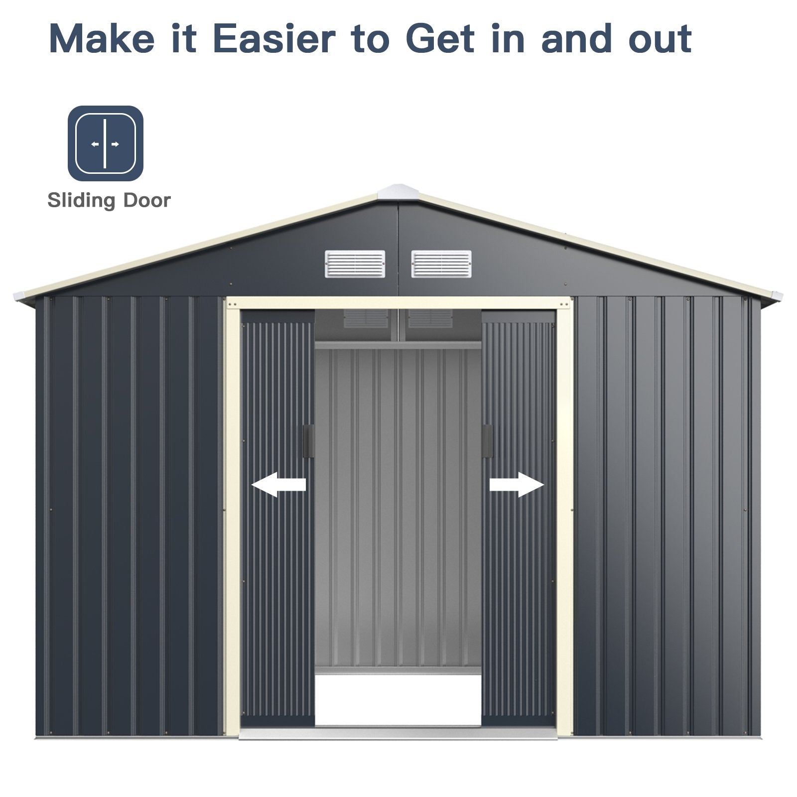 Outdoor Storage Shed with 4 Vents and Double Sliding Door-Size 2