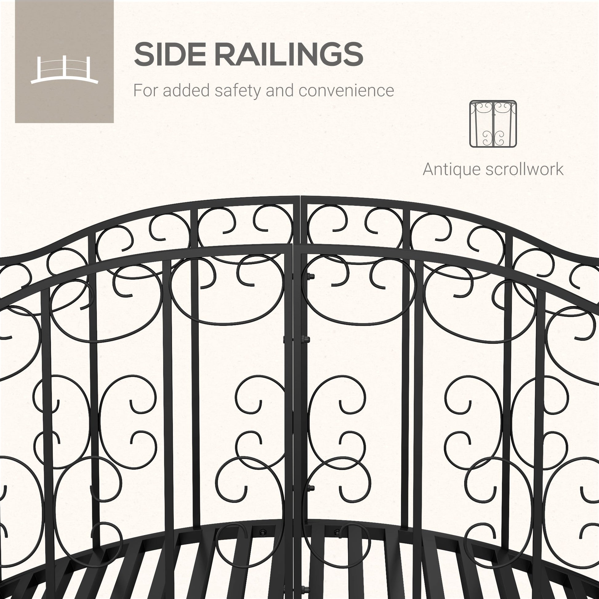 Outsunny 1.2M Metal Decorative Scrollwork Arch Garden Bridge, Black