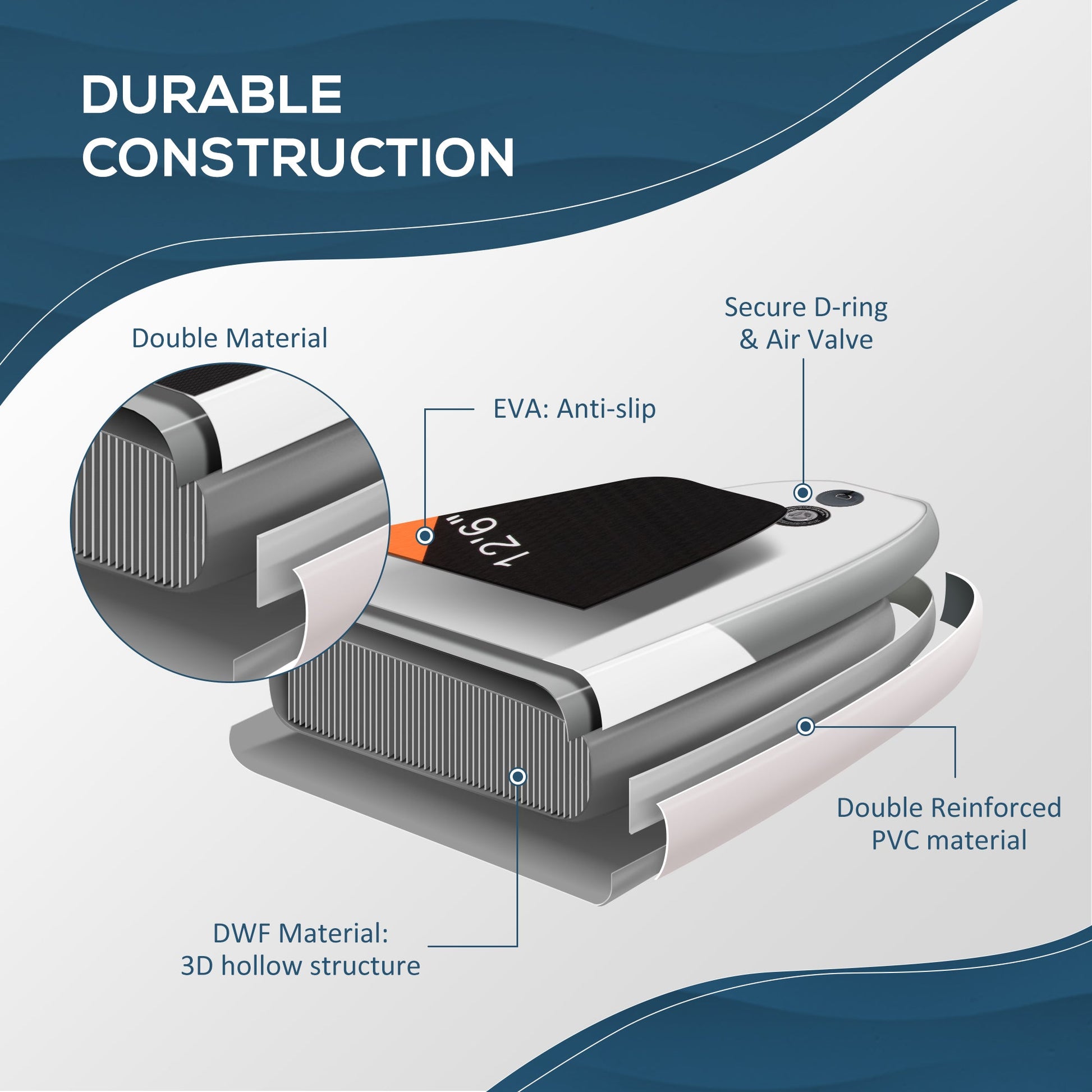 Outsunny 10'6" x 30" x 6" Inflatable Stand Up Paddle Board, Non-Slip Deck Board with Adj Paddle, ISUP Accessories and Carry Bag, for Youth Adults Beginner, White