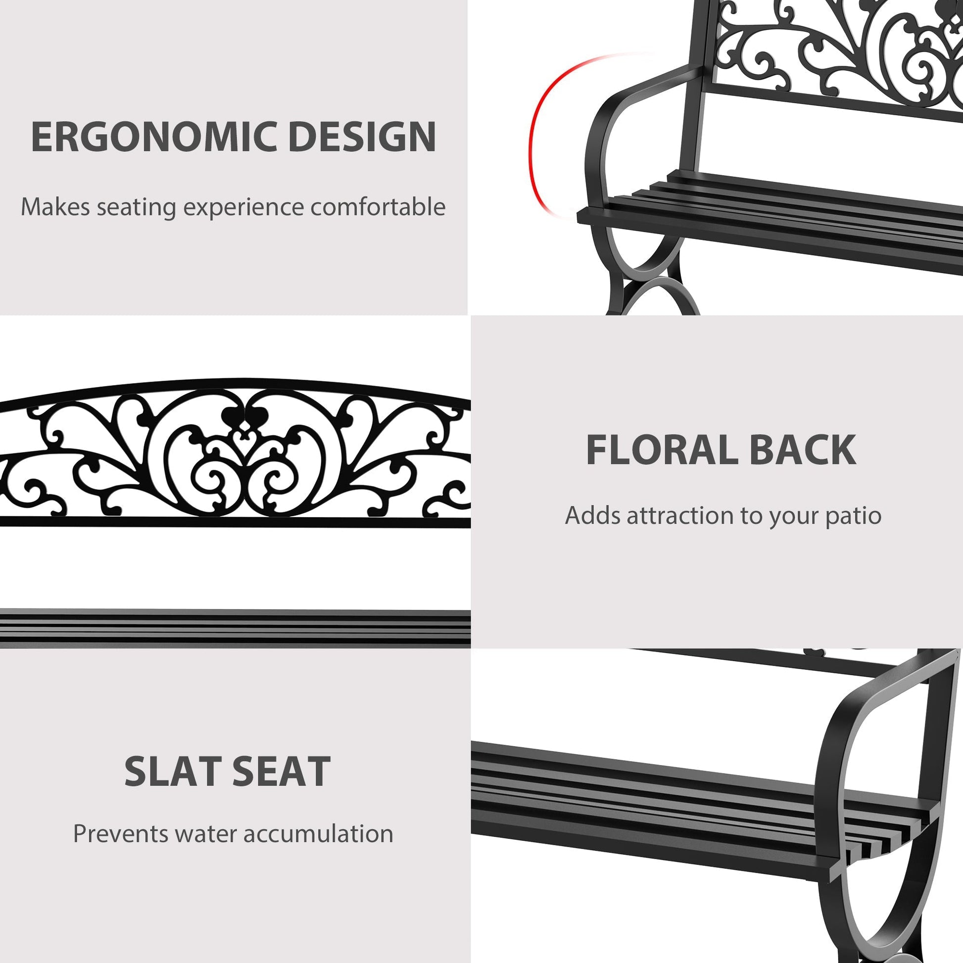 The blooming garden bench from Outsunny is ideal for enjoying your favorite peaceful spot, along a path, under a tree, or among the flowers in your outdoor space. This product is constructed with steel frame to ensure a durability. Relax with a friend or family member and enjoy the scenery of your front or backyard. The tough steel construction and 127cm length of this patio garden bench allows for 2 individuals to comfortably sit and relax at once.