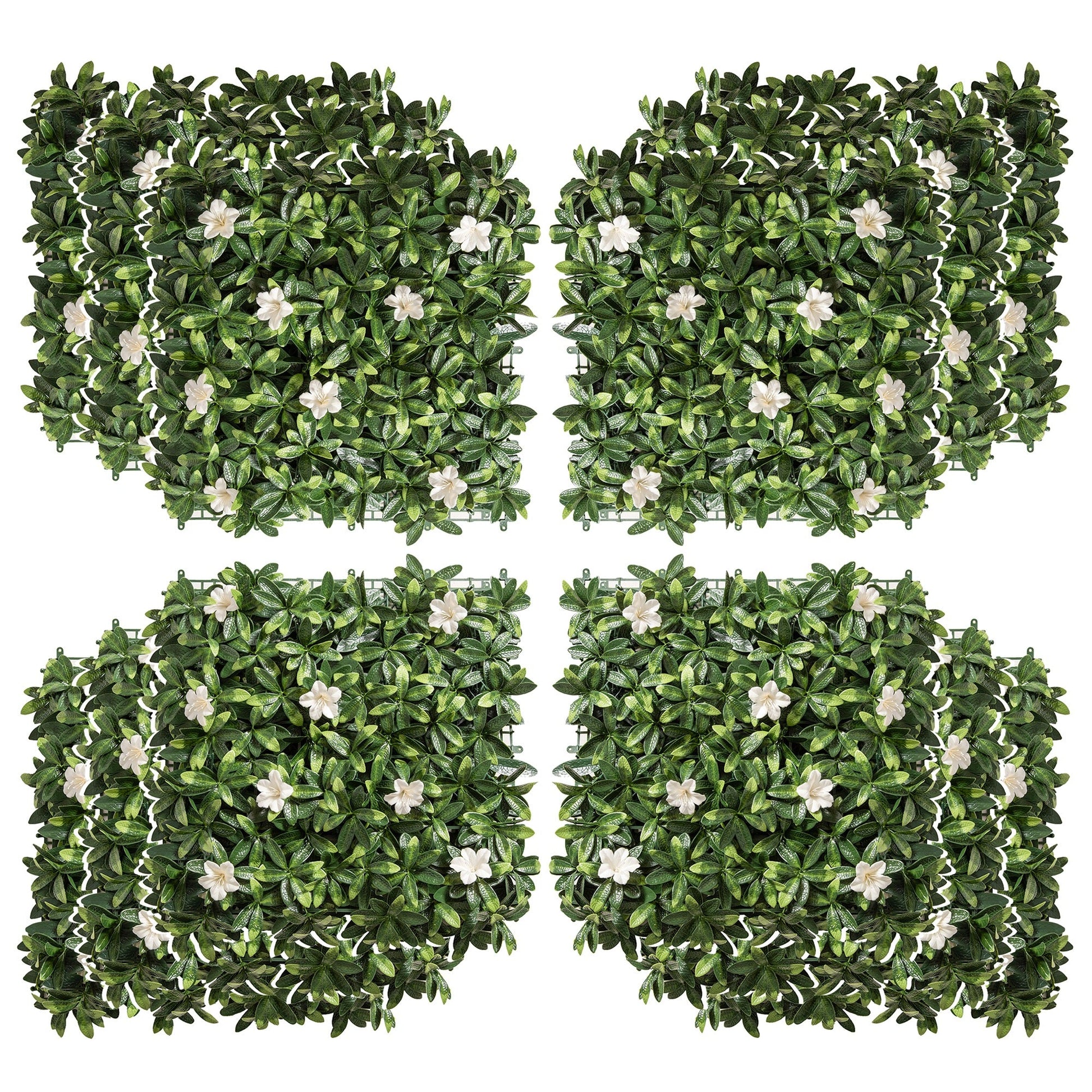 Outsunny 12PCS Artificial Boxwood Wall Panels 50cm x 50cm Rhododendron Privacy Fence Screen Faux Hedge Greenery Backdrop for Home Garden Backyard Balcony