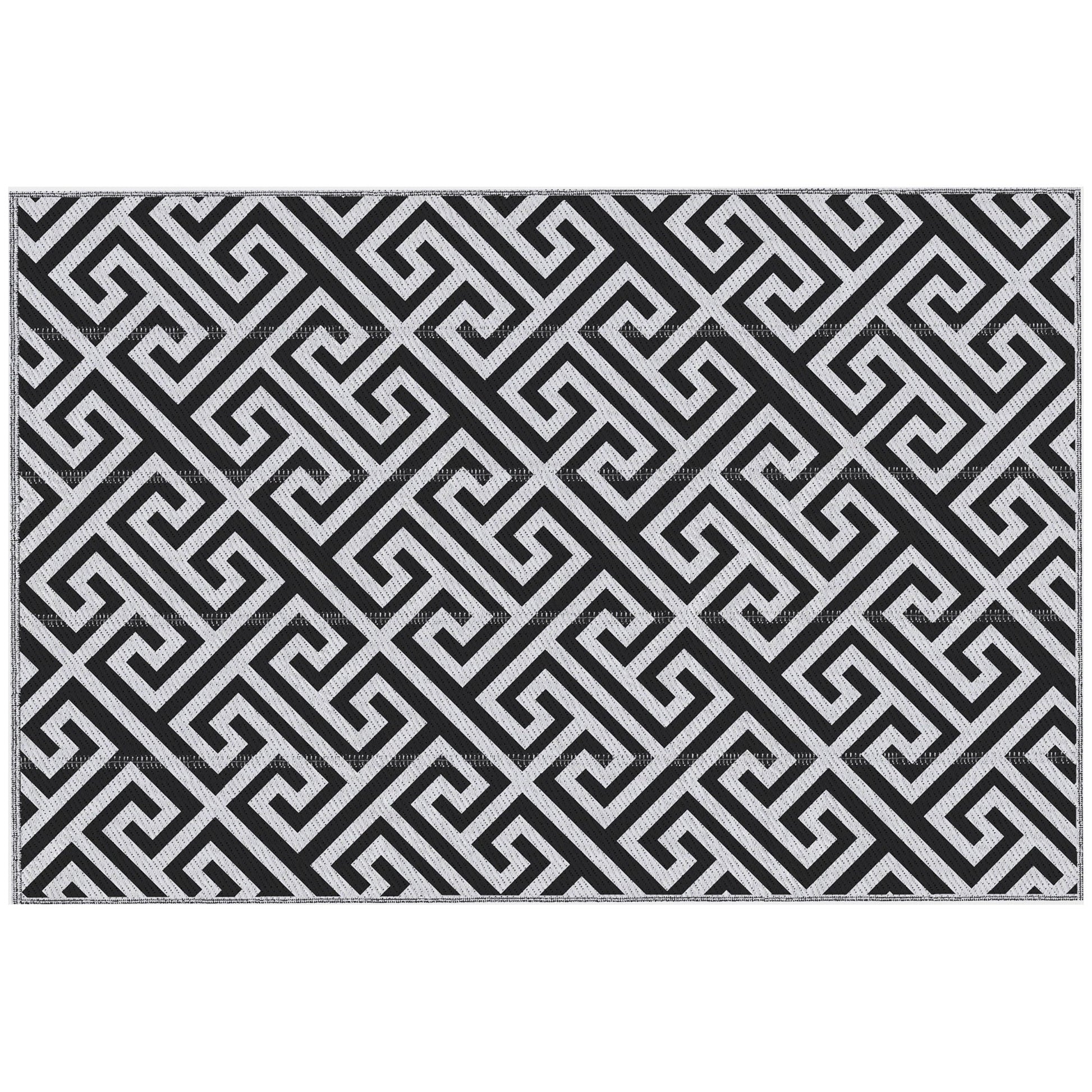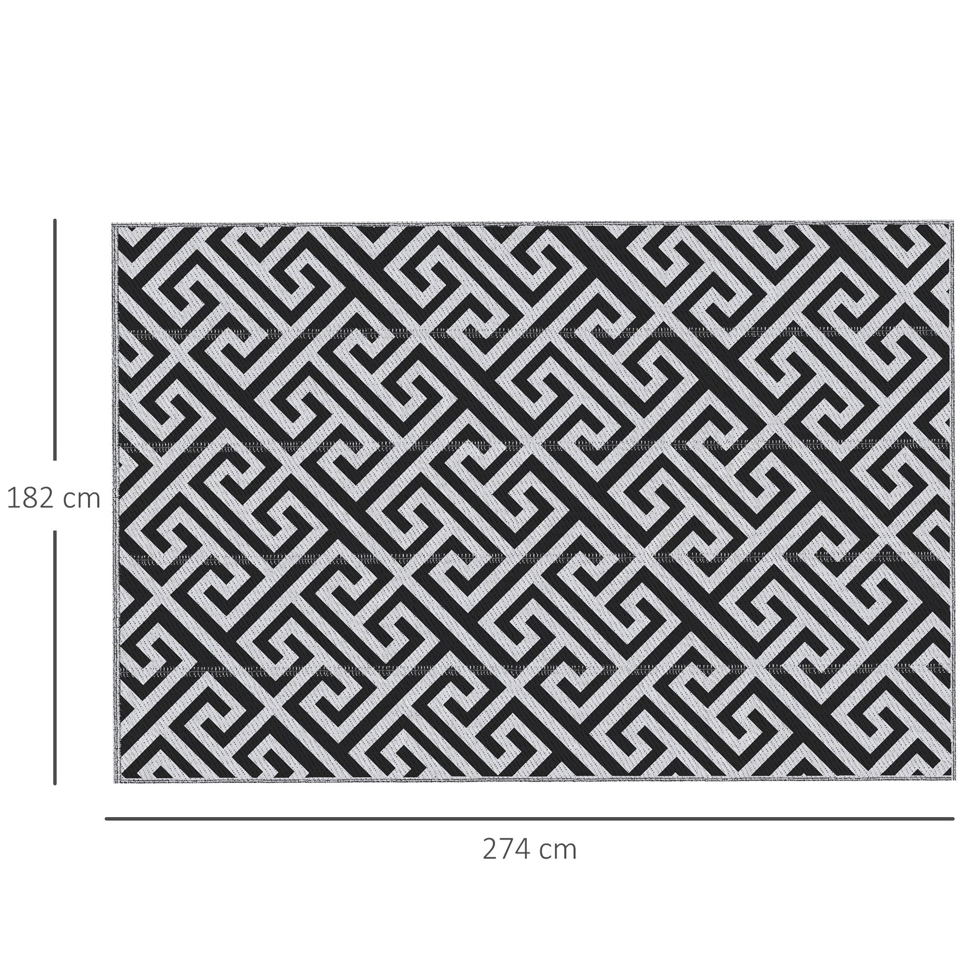 Outsunny 182 x 274 cm(6x9ft) Outdoor Rug Reversible Mat Plastic Straw Rug Portable RV Camping Mat for Garden Deck Picnic Indoor, Black & White