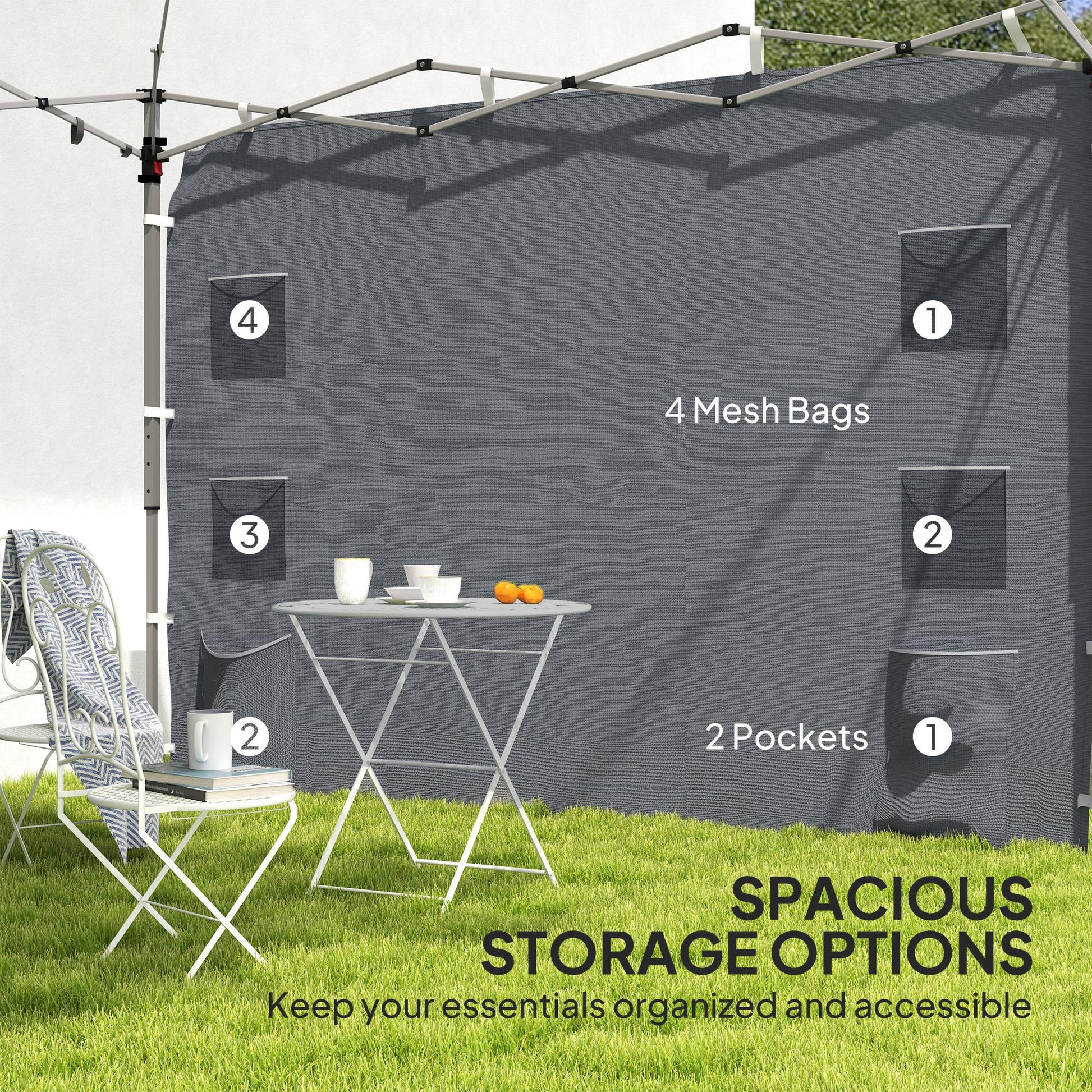 The easy way to refresh your Outsunny 3 x 3 m gazebo, with this replacement 195 x 295cm sidewall. It has four mesh bags and two pockets integrated for handy, close-by storage. Made from oxford fabric, it is durable for extended use outdoors. The hook and loop fasteners allow you to attach and remove easily - a hassle-free replacement.