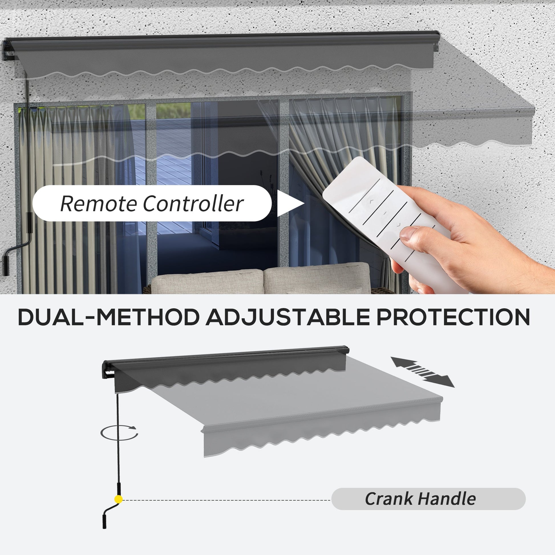 Outsunny 2.5 x 3.5m Aluminium Frame Electric Awning, with Remote - Dark Grey