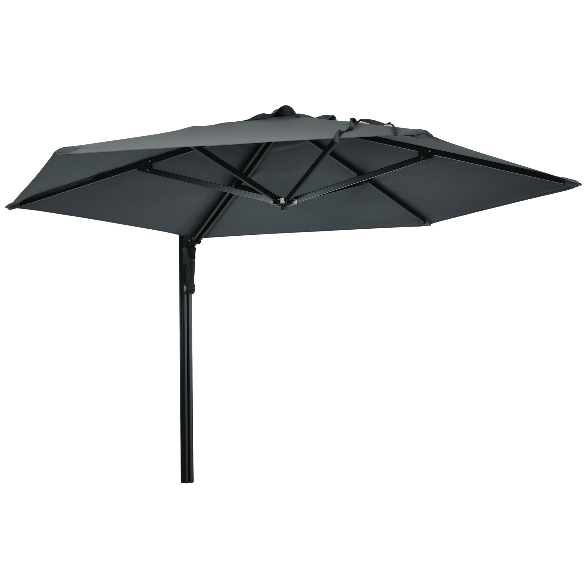 Outsunny 2.5m Wall Mounted Parasol, Hand to Push Outdoor Patio Umbrella with 180 Degree Rotatable Canopy for Porch, Deck, Garden, 250 cm, Dark Grey