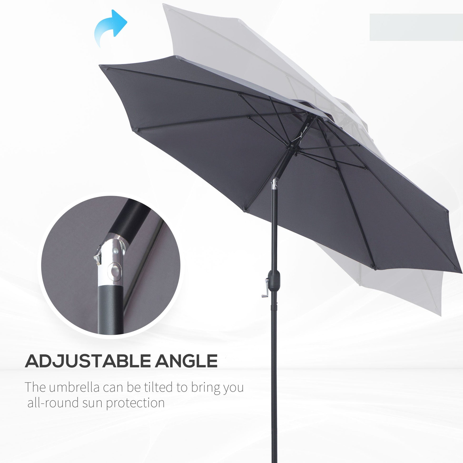 Outsunny 2.7M Garden Parasol Umbrella with Glass Fibre Ribs and Aluminium Frame, Tilting Sun Shade Shelter Canopy, Charcoal Grey