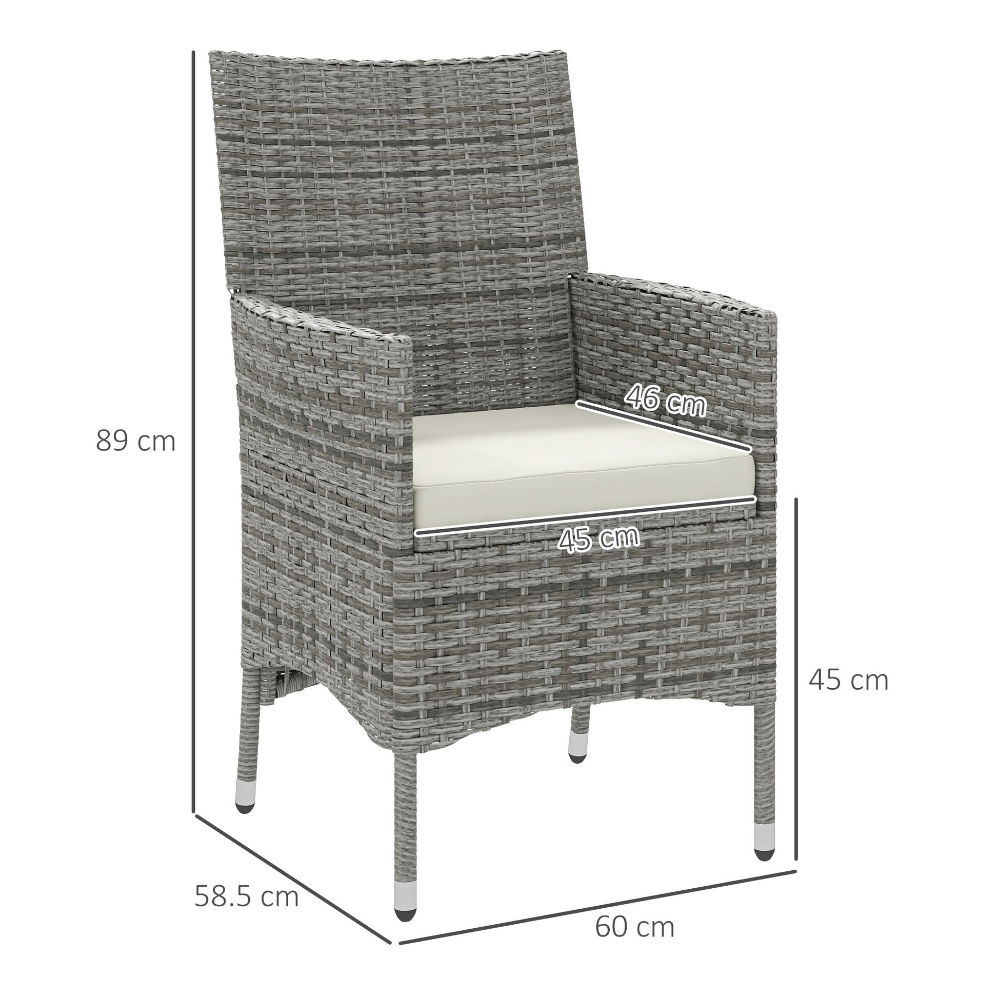 Outsunny 2 Pieces Rattan Garden Chairs Dining Chair Set with Cushion, Mixed Grey
