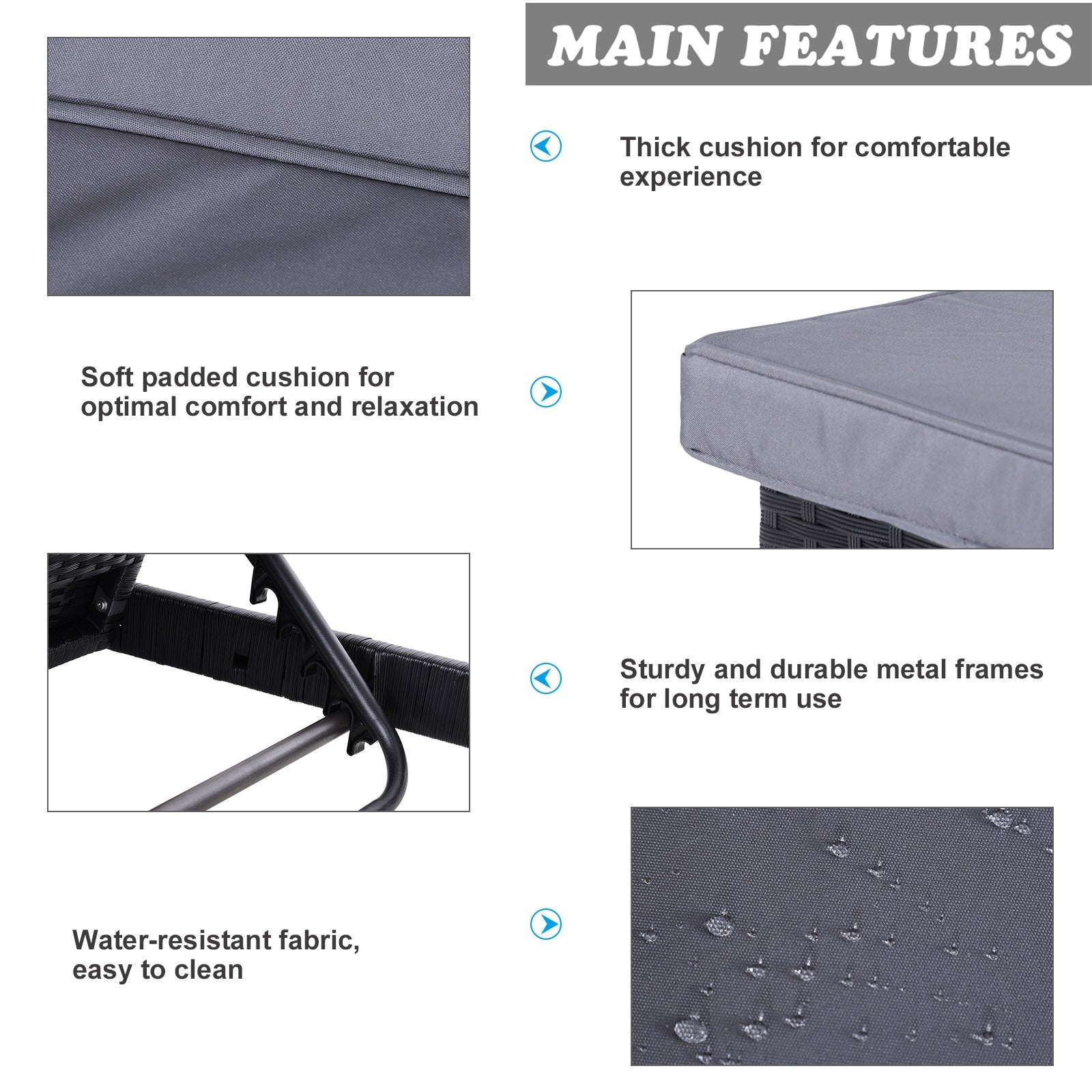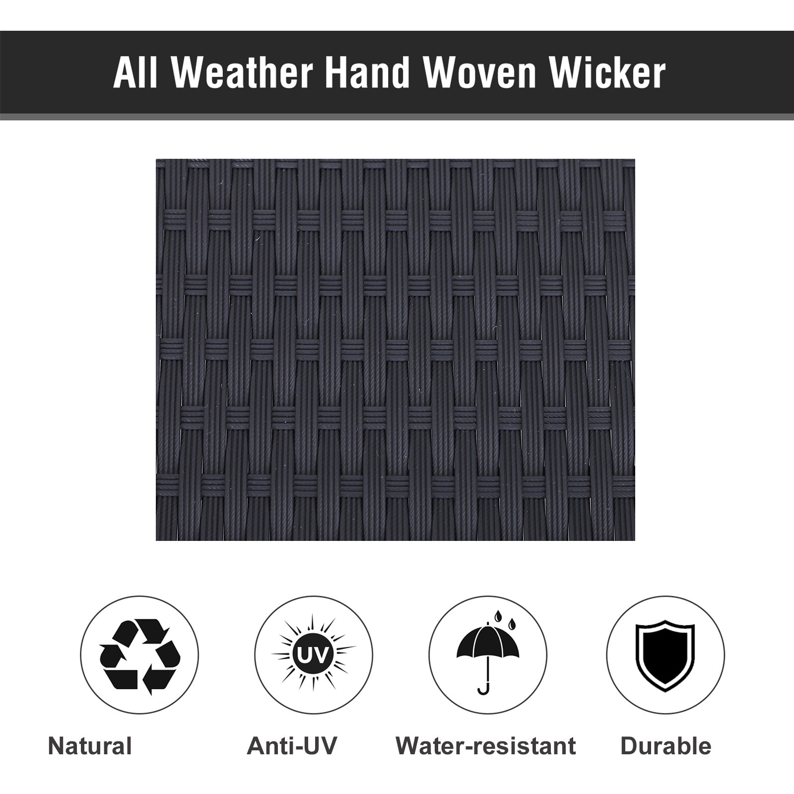Outsunny 2 Seater Rattan Lounger Adjustable Double Chaise Chair Loveseat w/ Cushion Black