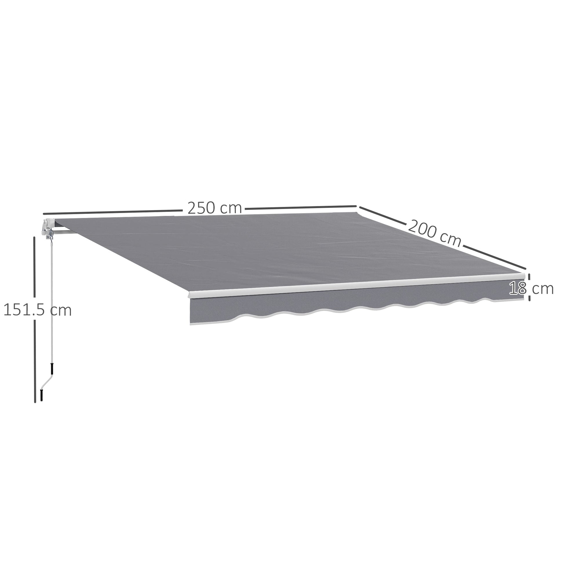 Outsunny 2 x 2.5m Manual Retractable Awning - Dark Grey