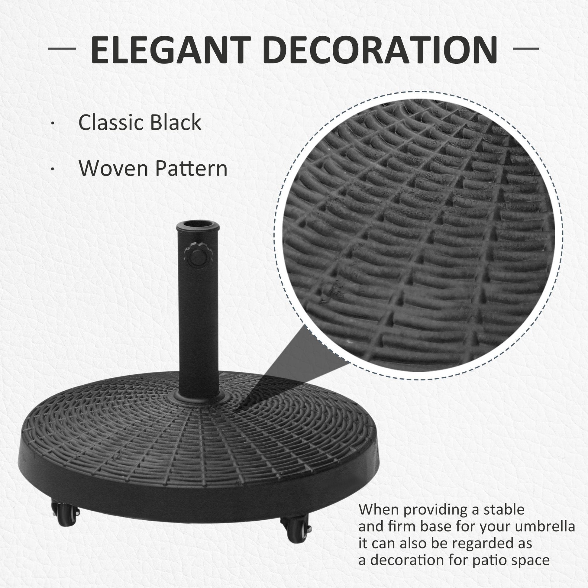 Outsunny 22.7kg Resin Patio Parasol Base Umbrella Stand Weight Deck Garden Sunshade Holder Round w/ Wheels Brakes Outdoor