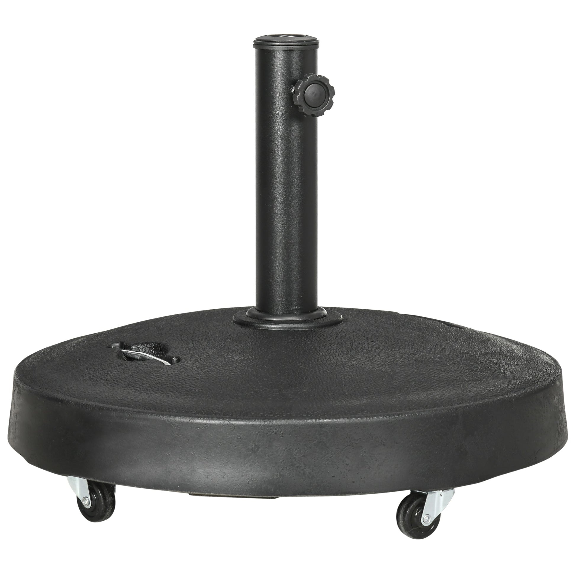 Outsunny 23.5kg Resin Garden Parasol Base with Wheels and Retractable Handles, Round Outdoor Market Umbrella Stand Weight for Poles of â38mm to â48mm, Black