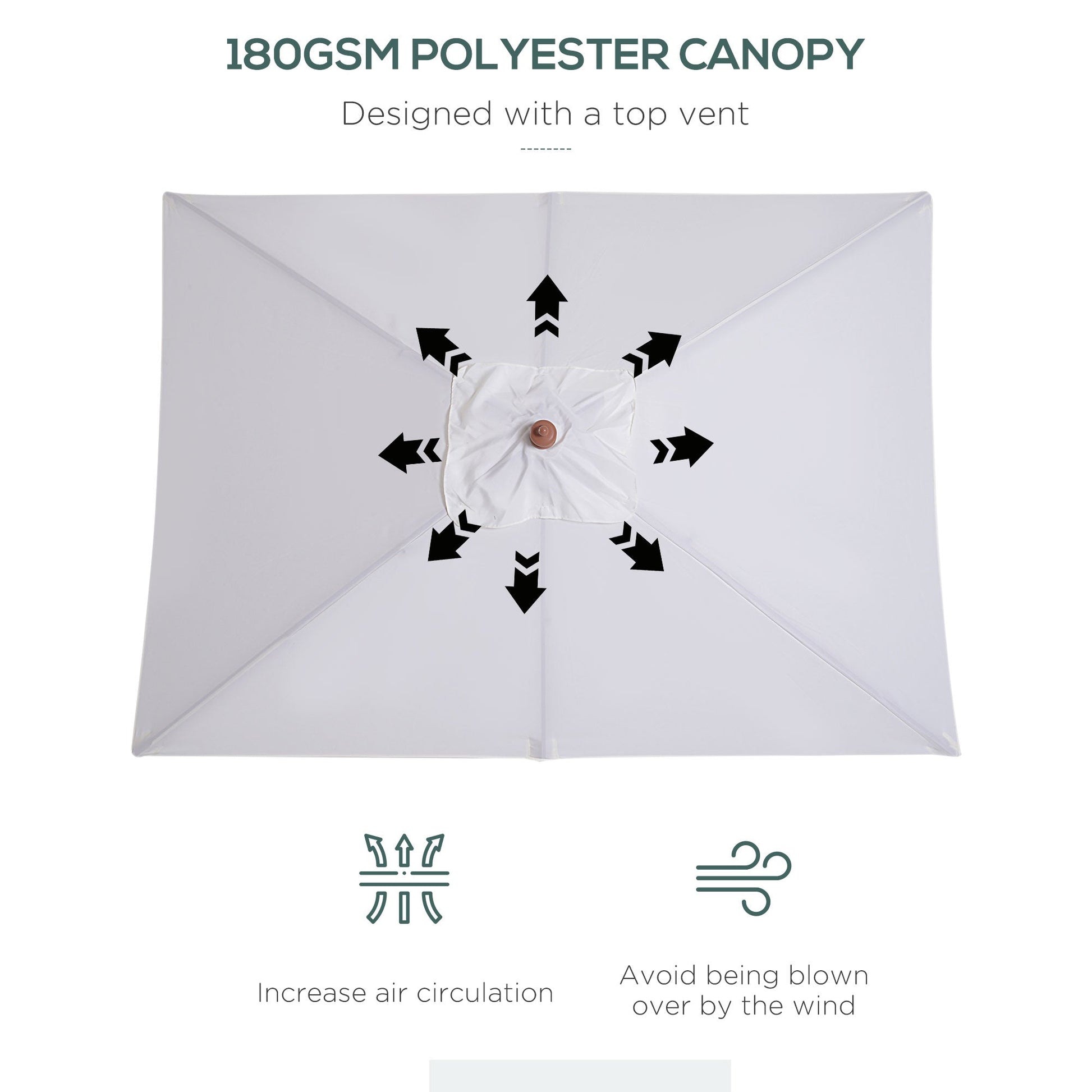 Outsunny 2m x 1.5m Garden Parasol Umbrella with Tilting Sunshade Canopy, Outdoor Market Table Umbrella with Wood and Bamboo Frame, Cream White