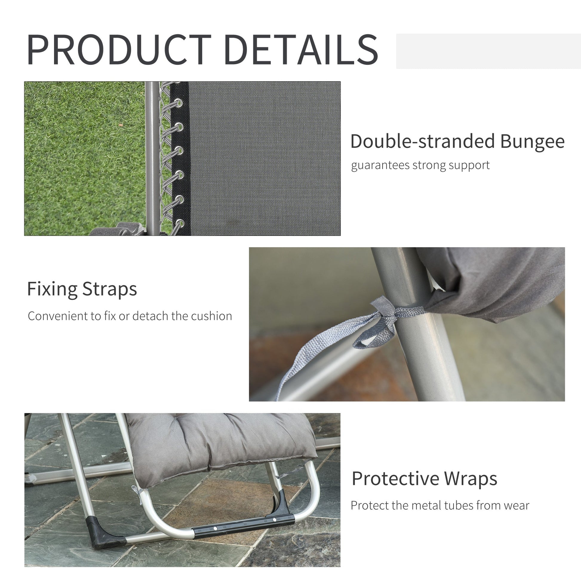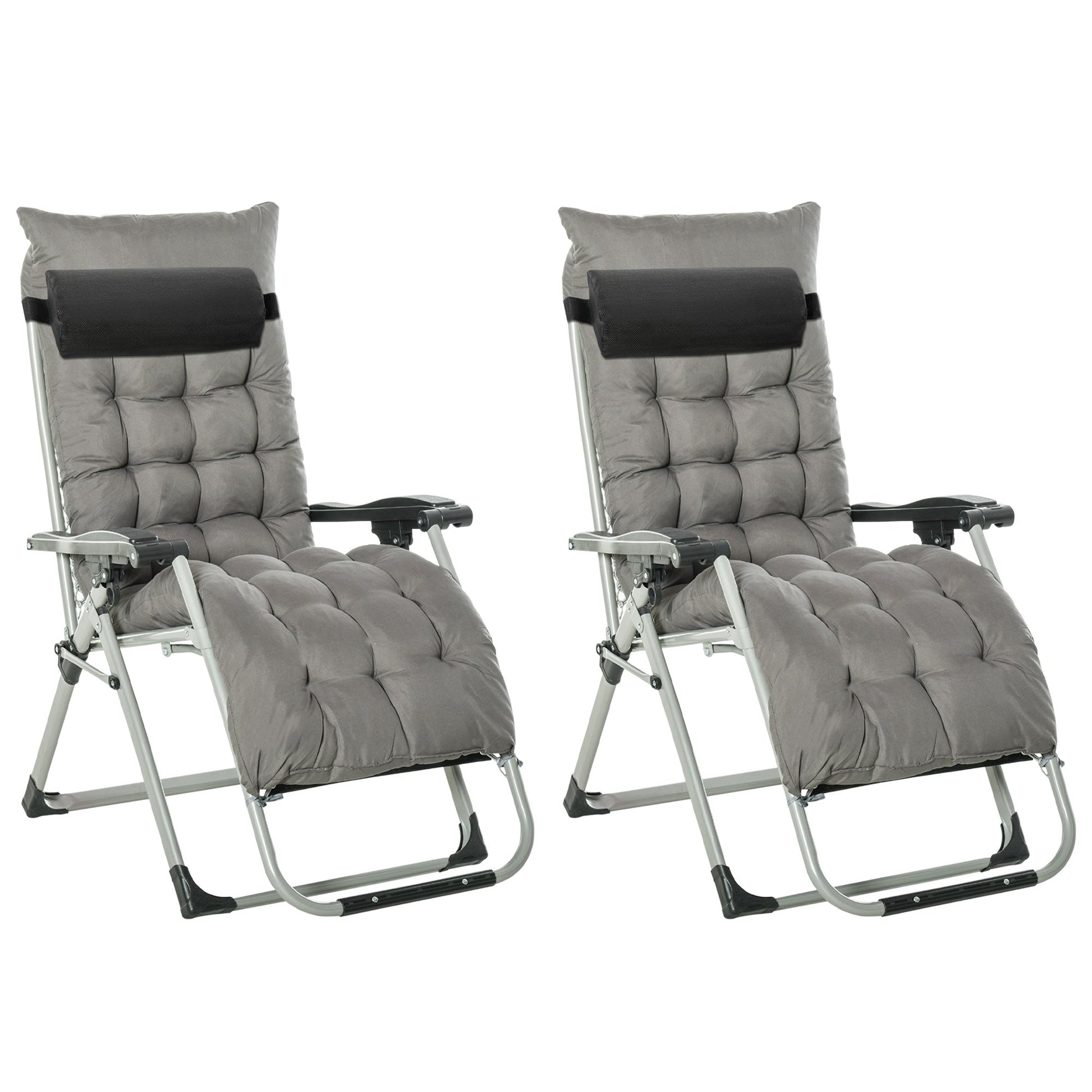 Outsunny 2pc Reclining Zero Gravity Sun Loungers ,Folding Chaise Lounge Chair with Cushions, Dark Grey