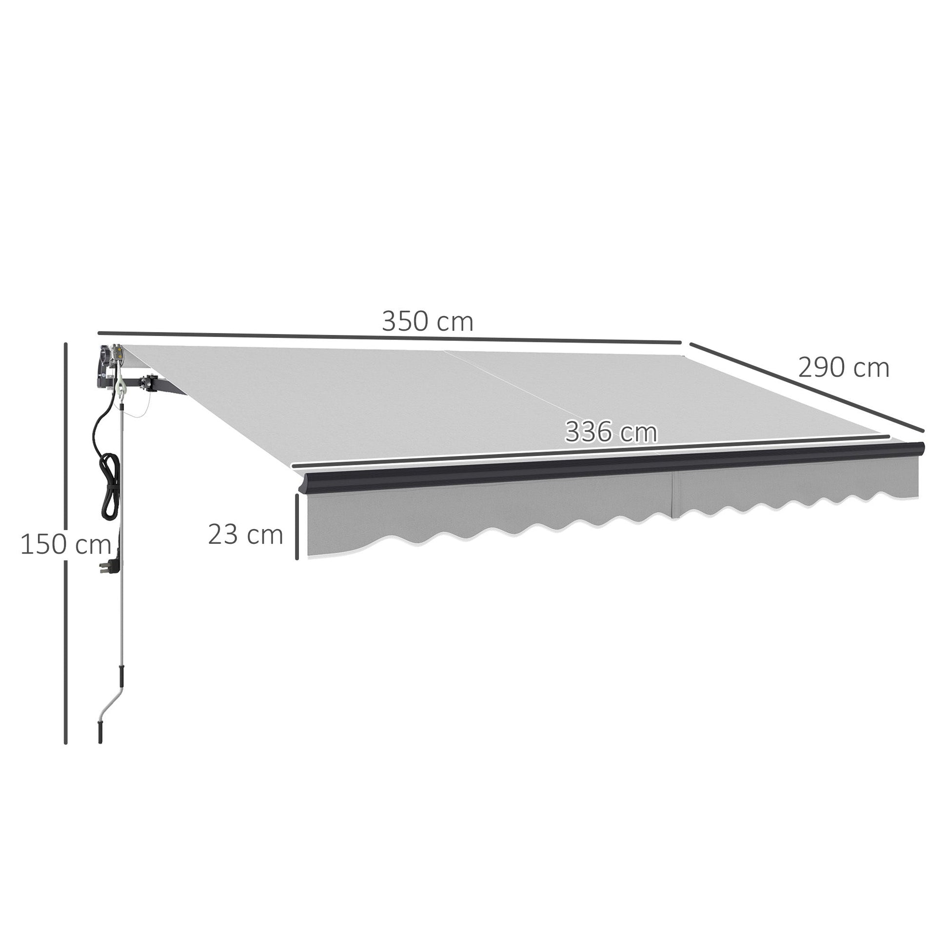 Outsunny 3.5 x 3(m) Electric Awning with Remote Controller, Aluminium Frame DIY Retractable Awning, UPF30+ Sun Shade Canopy for Garden Patio Deck Door Window, Light Grey