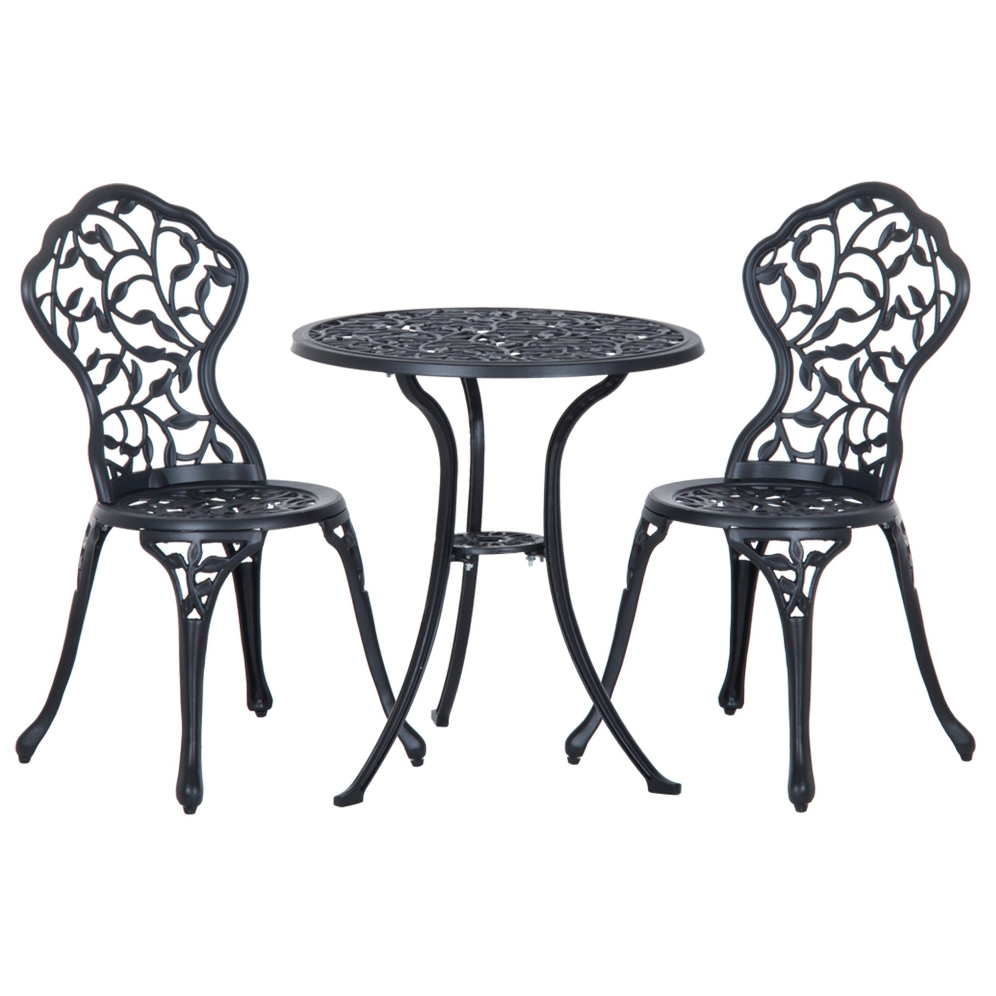 Outsunny 3 Pcs Aluminium Bistro Set Garden Furniture Dining Table Chairs Antique Outdoor Seat Patio Seater Black