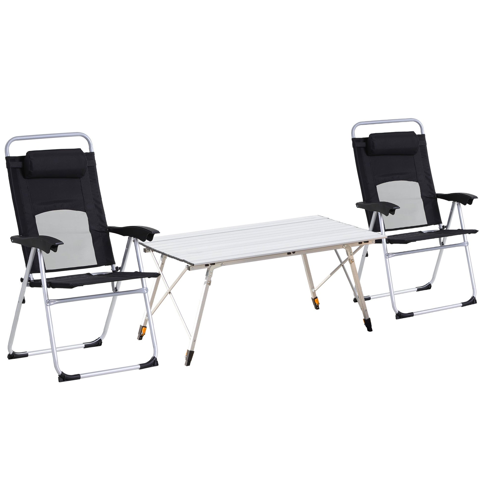 Outsunny 3 Piece Folding Camping Table and Chairs Set, Backpacking Chairs with Portable Table