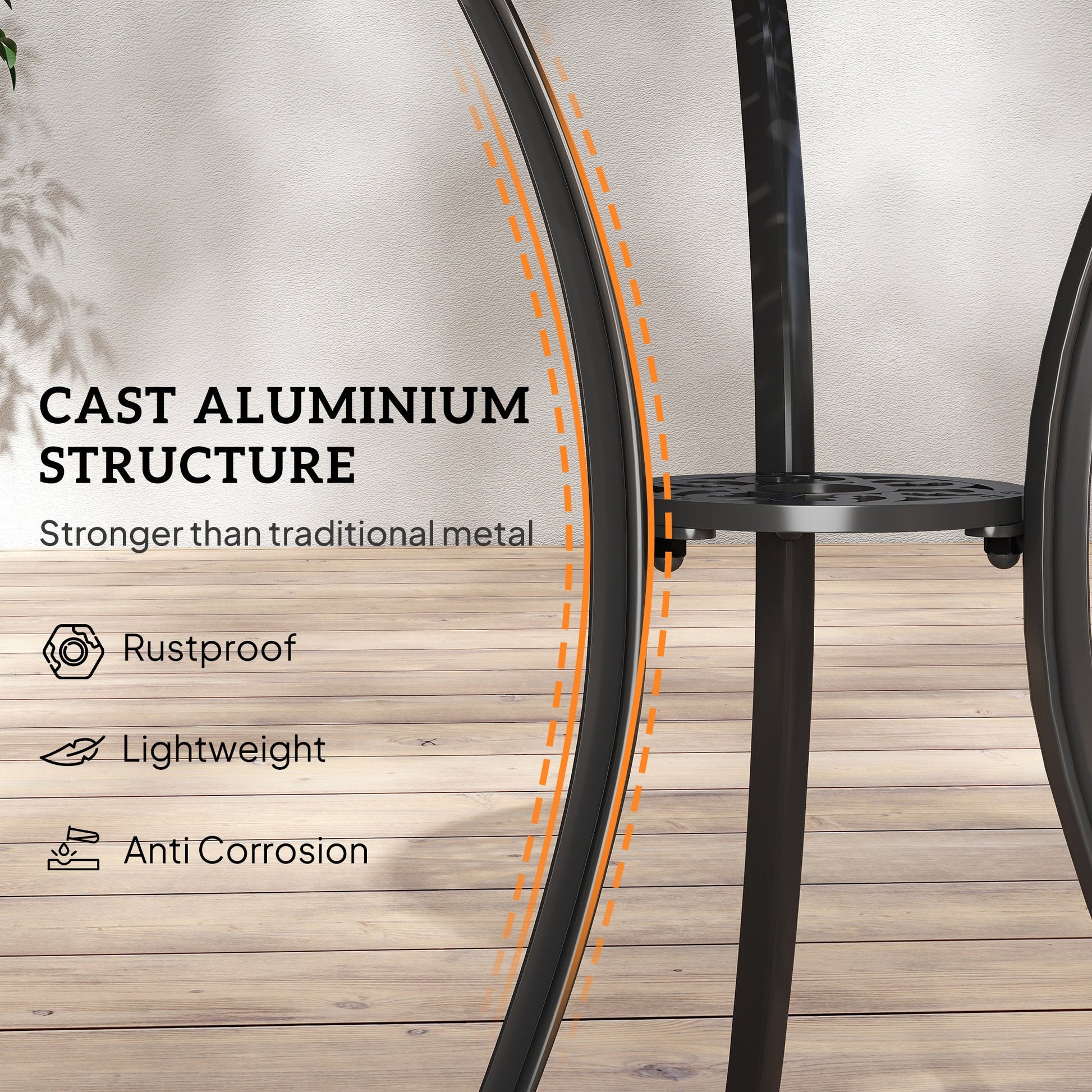 This three-piece outdoor garden furniture set from Outsunny will give you the optimal spot to dine and relax. It's formed of two chairs and a matching table, with cast aluminium forming the frame of all pieces to ensure they are robust and tough. Round in shape, the table features a middle hole to keep a sun parasol securely in place, with the back of the chairs showcasing a cut-out design for an attractive finish. Our outdoor table and chairs are great for flats and apartments with balconies.