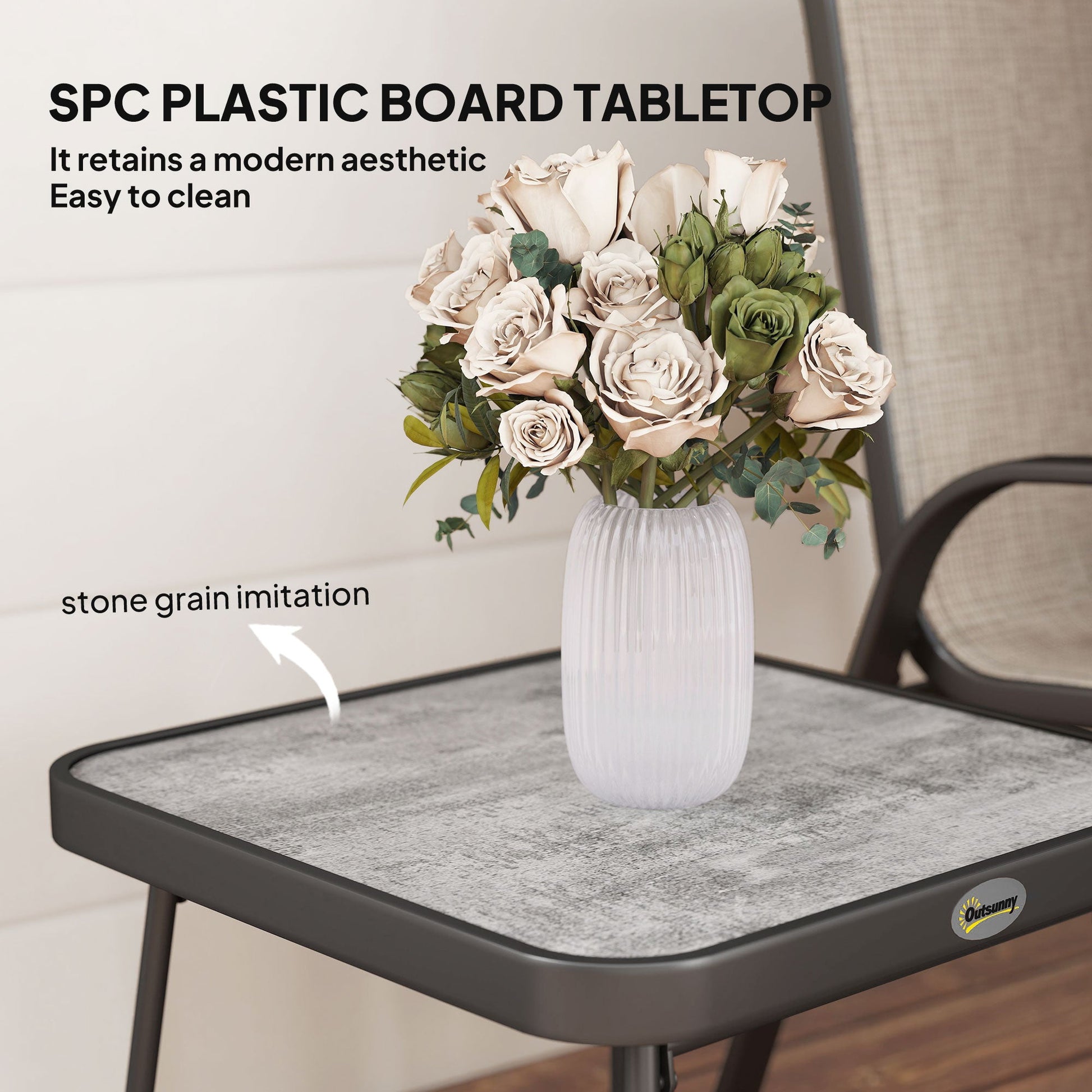 Outsunny 3 Pieces Outdoor Bistro Set, Patio Stackable Armchairs with Breathable Mesh Fabric and SPC Board Coffee Table, Brown