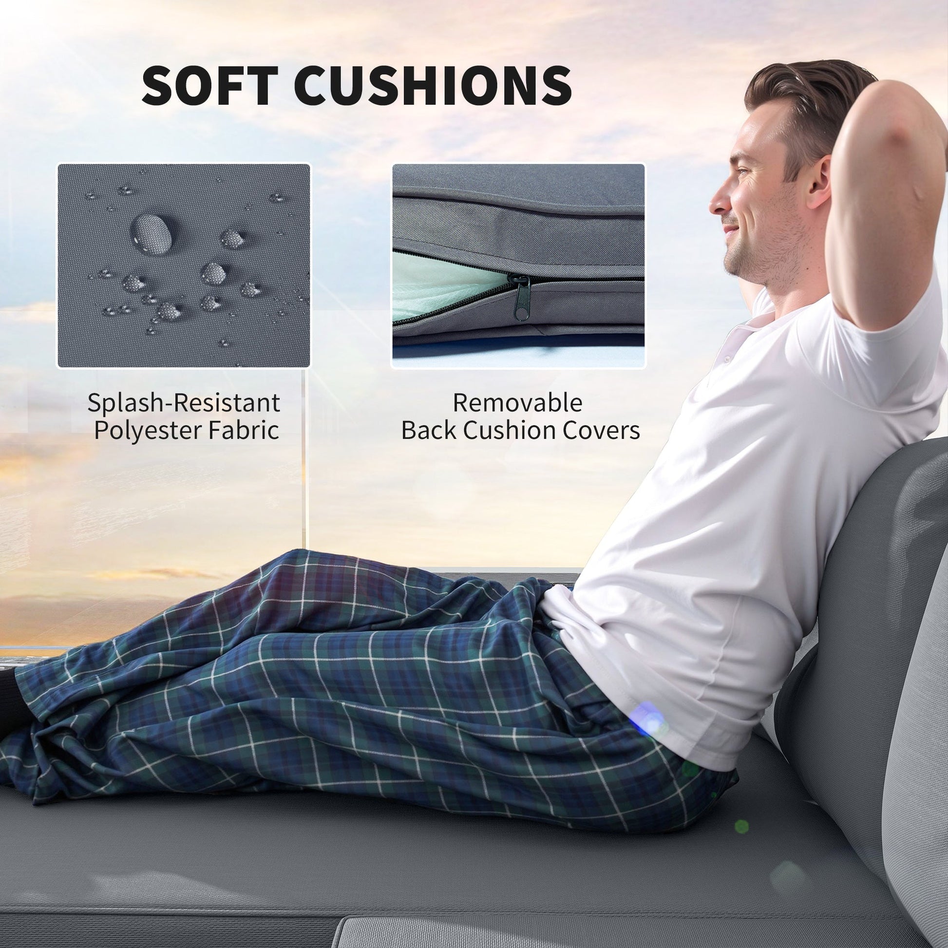 - Back Cushions with hidden zippers simplify washing and maintenance