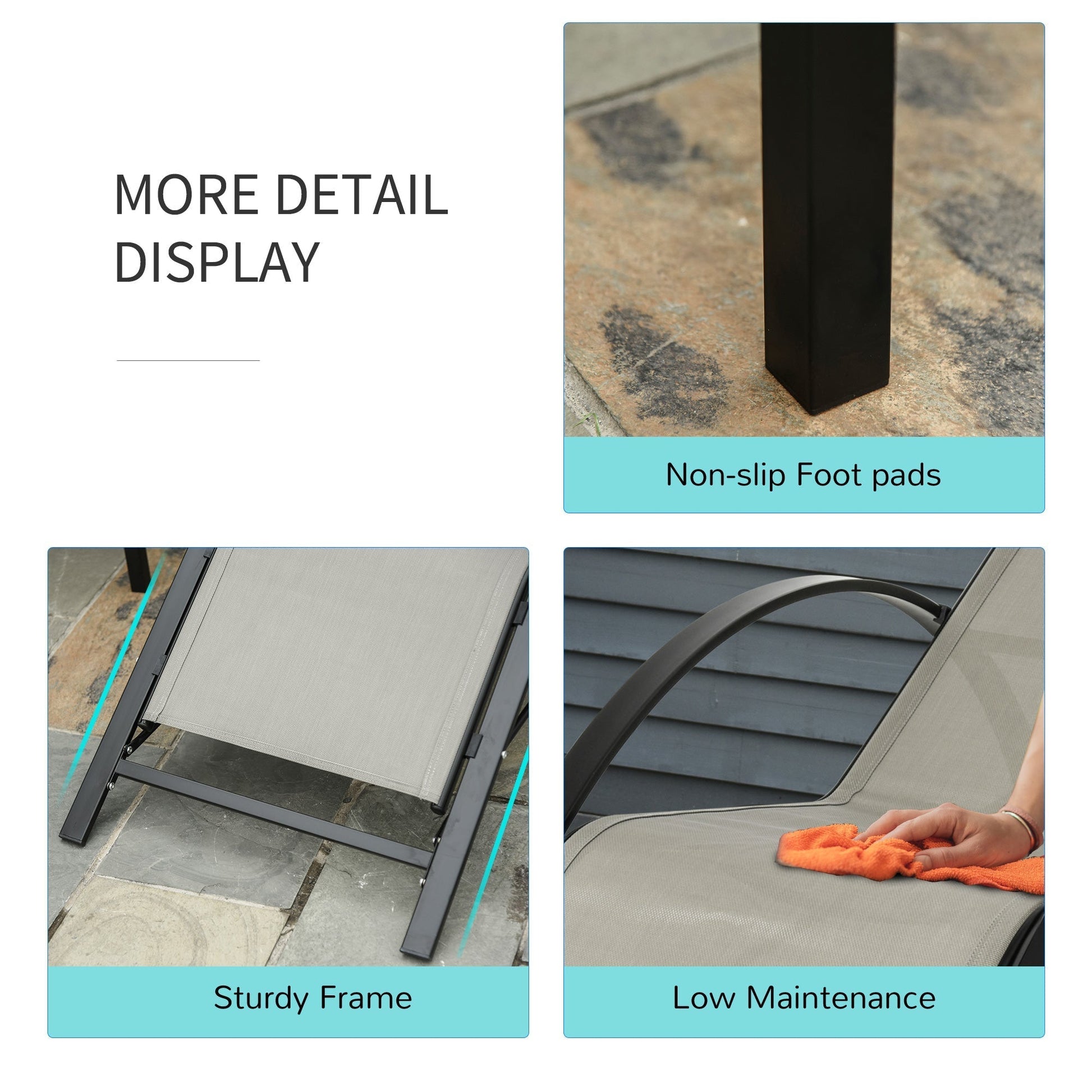 Outsunny 3 Pieces Sun Lounger Chair Set, Metal Frame Garden Outdoor Sunbathing Chair with Side Table and Armrest, Grey