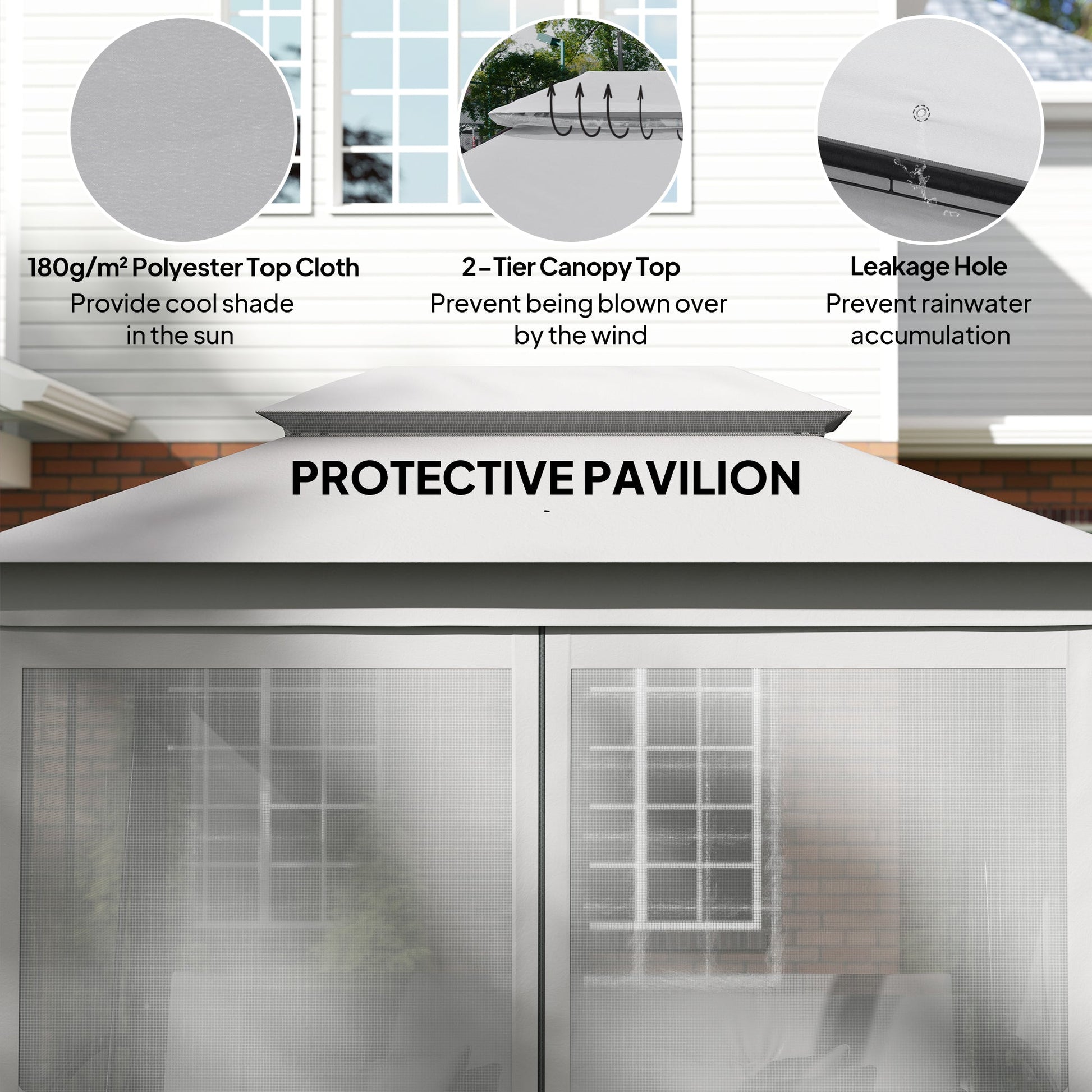Outsunny 3 Seater Convertible Swing Chair, Outdoor Gazebo Swing Seat Bed with Double Tier Canopy, Cushioned Seat, Mesh Sidewalls, Light Grey