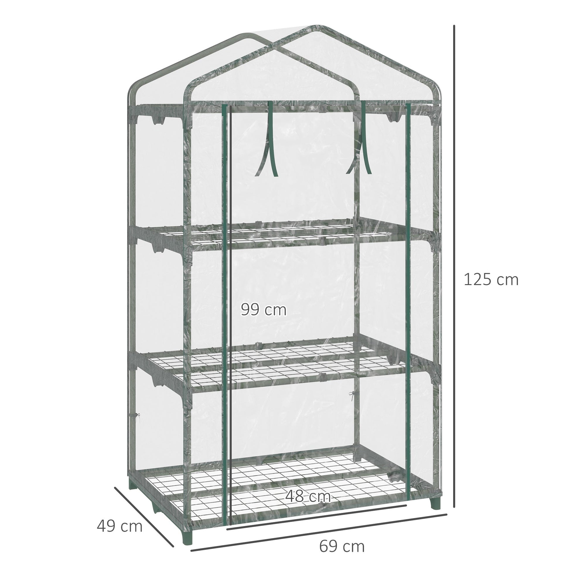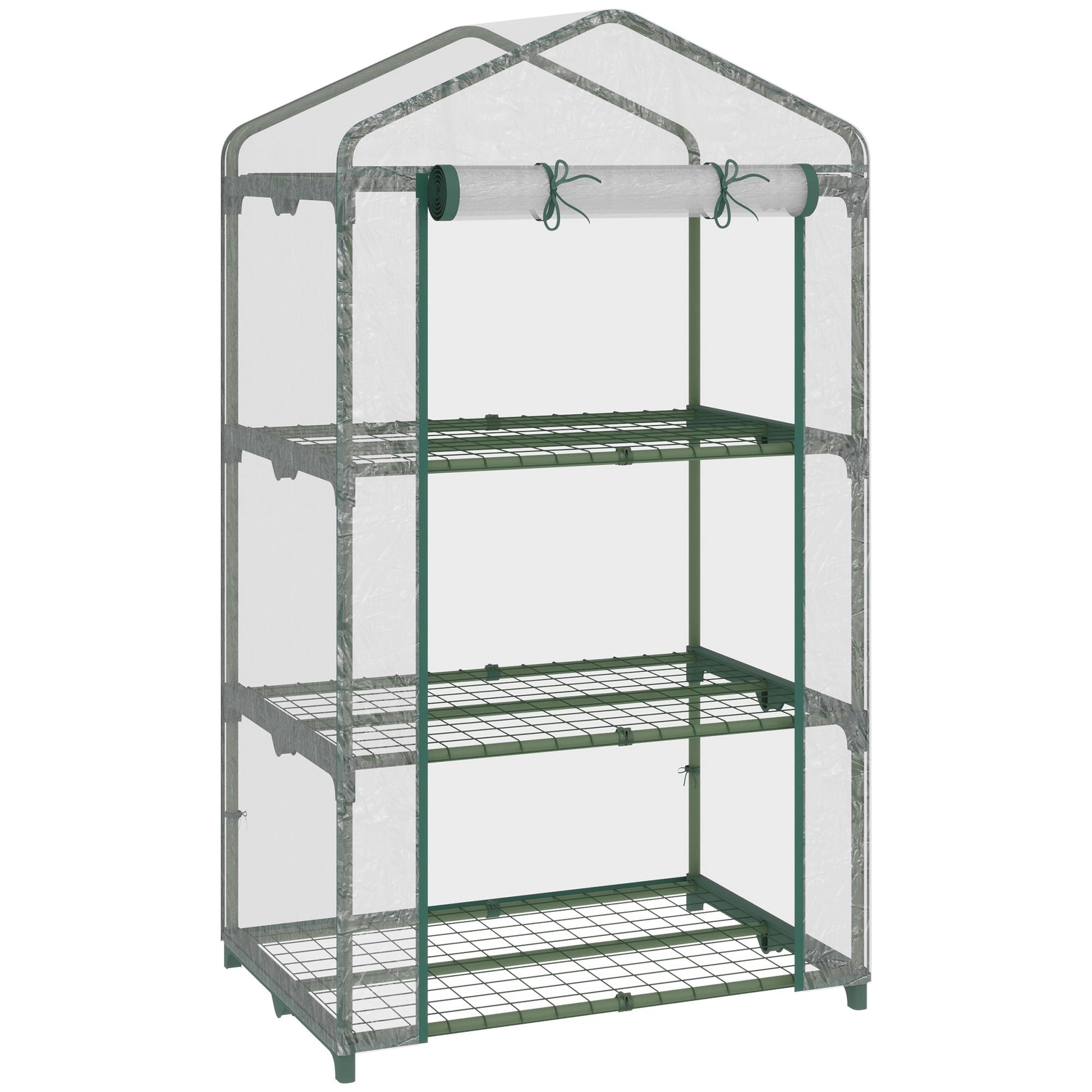 Outsunny 3 Tier Mini Greenhouse Portable Garden Grow House with Roll Up Door and Wire Shelves, 69L x 49W x 125H cm, Clear