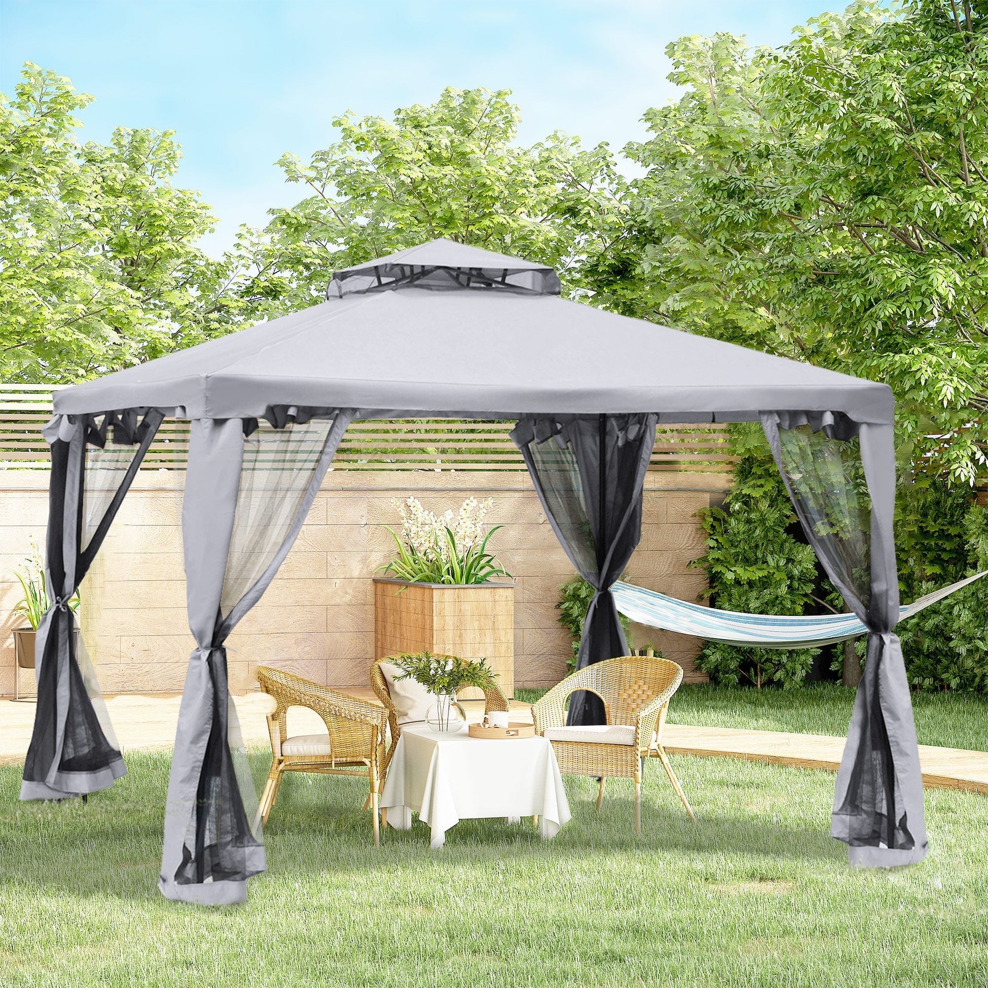 Outsunny 3 x 3 m Metal Gazebo, Garden Pavillion, Double Roof Outdoor Canopy Shelter with Mesh Sidewalls, Grey