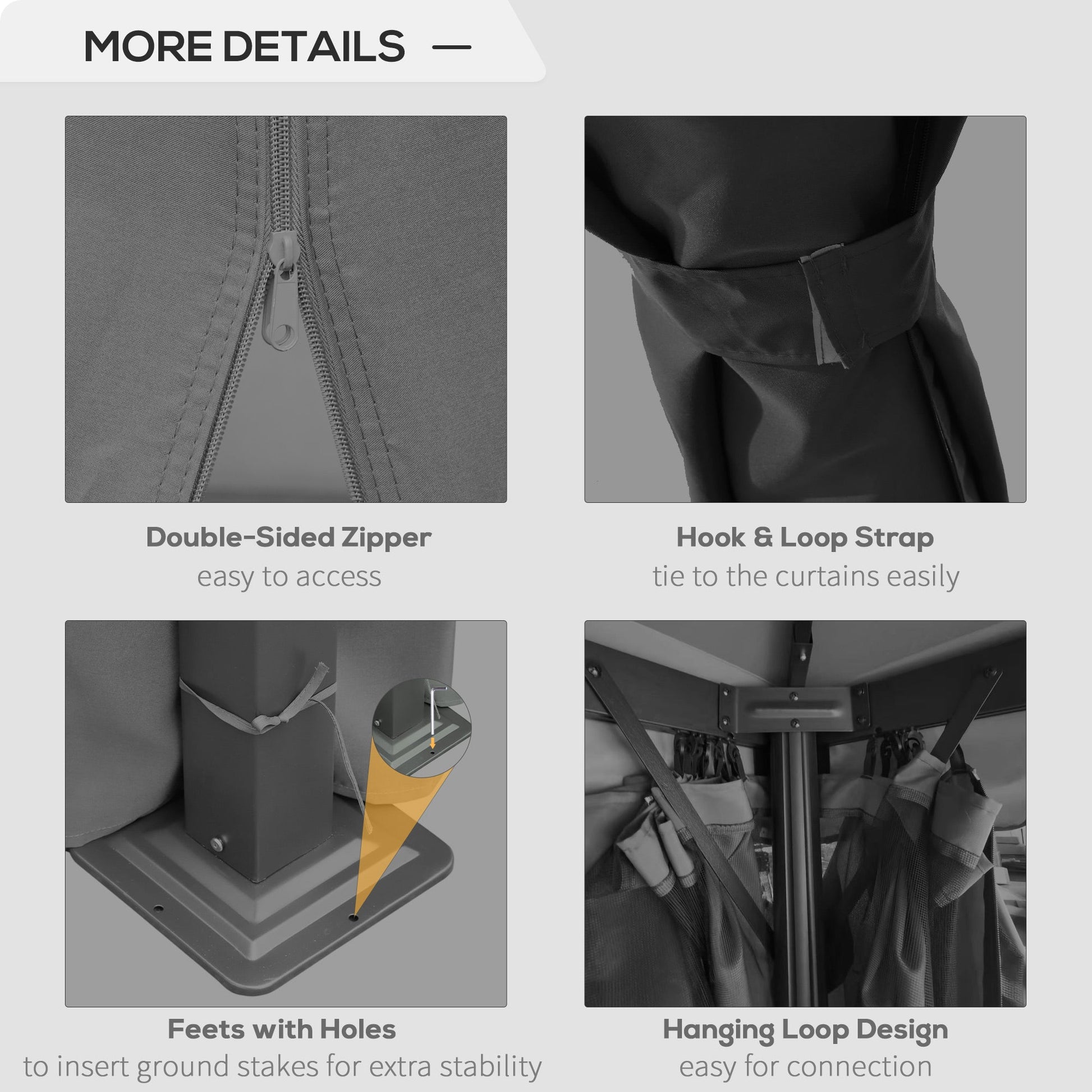 Transform your garden into a haven of comfort and elegance with the Outsunny 3x3 meter garden gazebo, perfect for retired couples who cherish family gatherings. Crafted with a robust blend of aluminum and steel, this pavilion offers a secure and spacious retreat. The two-tier polyester canopy ensures gentle protection from the sun and light rain, while the curtains with inner netting provide privacy and keep pesky insects at bay, allowing you to enjoy the tranquillity.