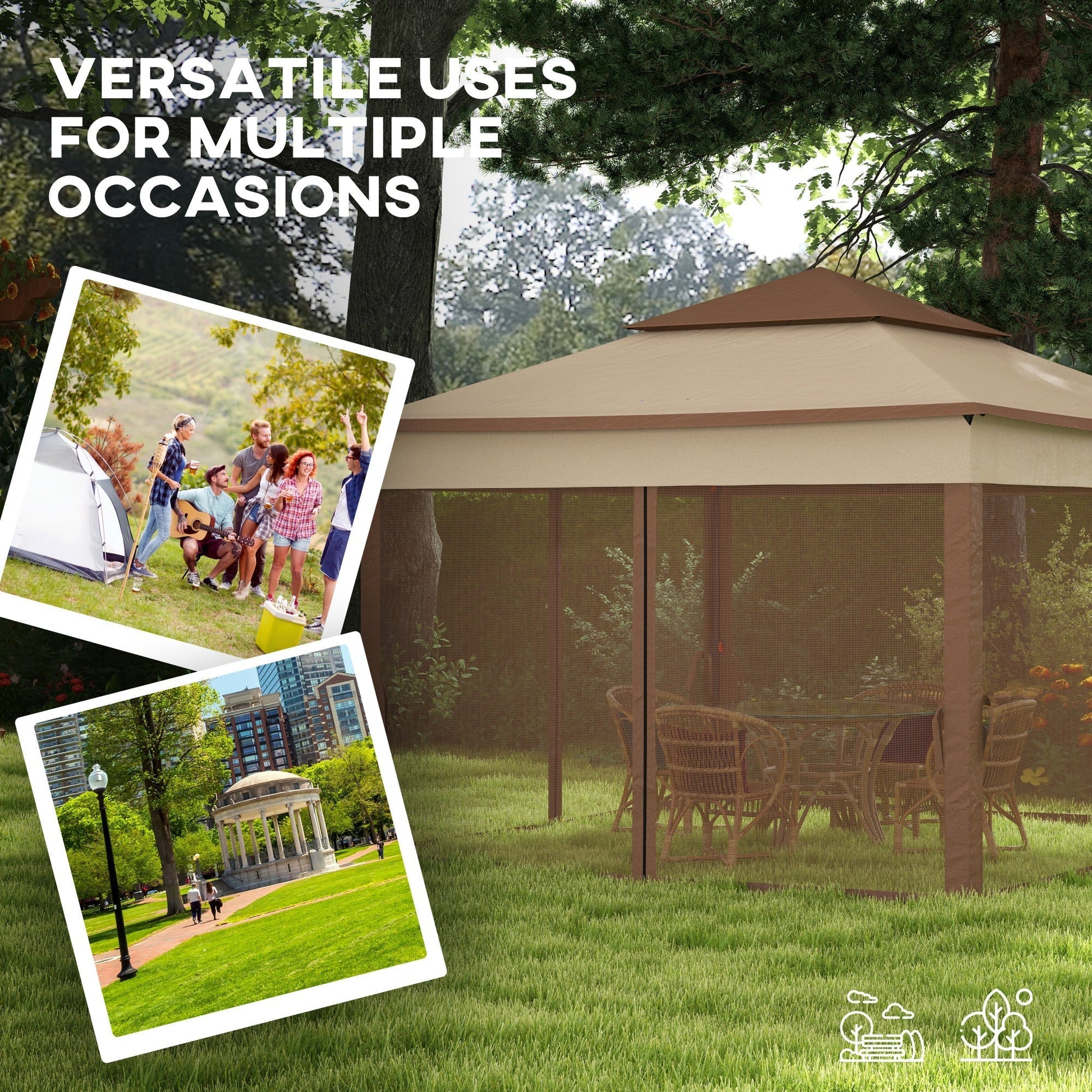 Outsunny 3 x 3(m) Pop Up Gazebo, Double-roof Garden Tent with Netting and Carry Bag, Party Event Shelter for Outdoor Patio, Khaki