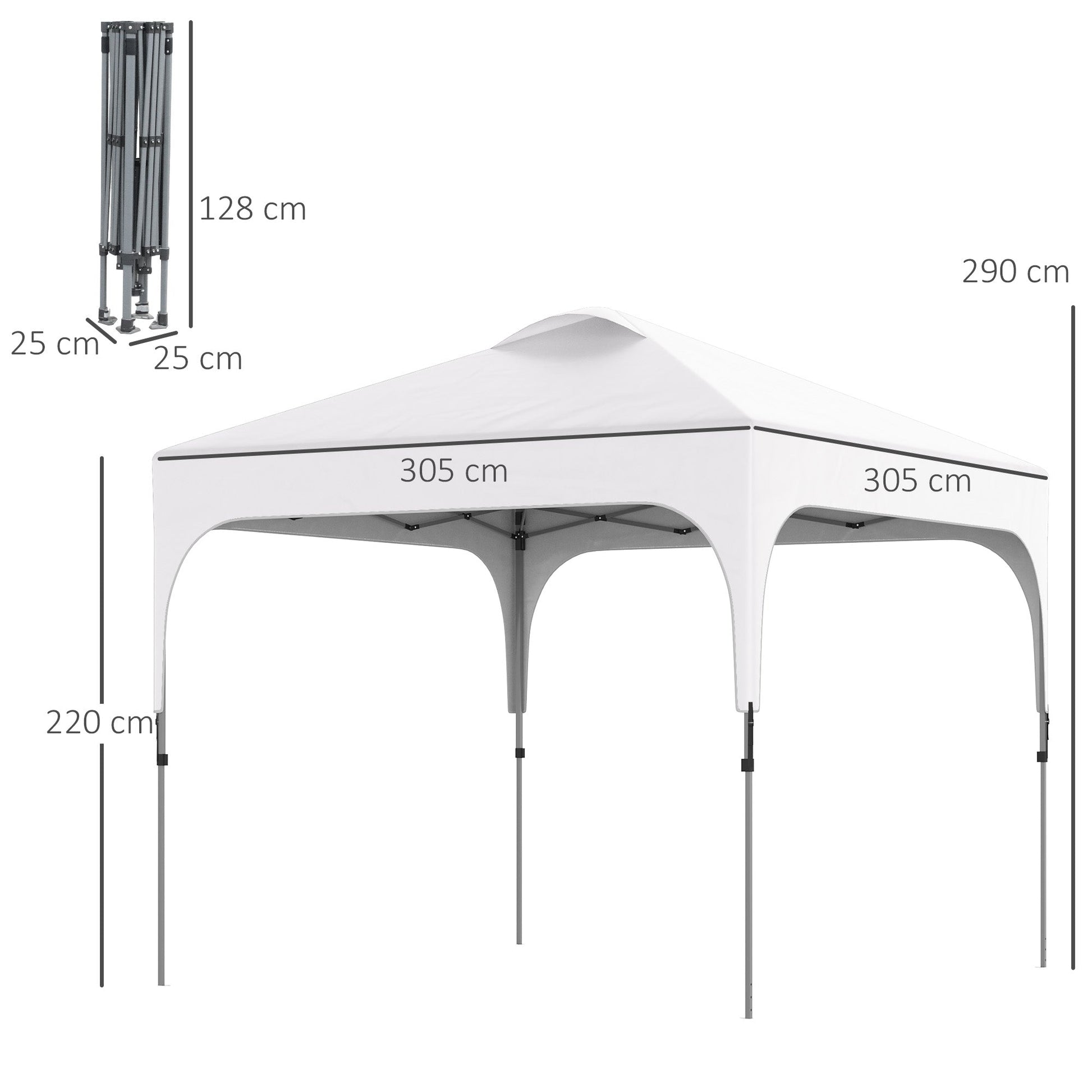 Outsunny 3 x 3(M) Pop Up Gazebo, UPF 50+ Foldable Canopy Tent with Wheeled Carrybag, 4 Leg Weight Bags, Height Adjustable Marquee Shelter 1 person easy setup for Outdoor Garden Patio Party, White